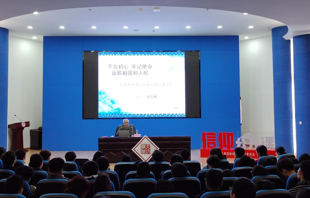 3月28日下午,学校2023年首场天印讲堂暨信仰公开课在图书馆报告厅举行。南京艺术学院冯效刚教授以“不忘初心,牢记使命,讴歌祖国和人民”为题,为太阳集团200余名师生讲述七一勋章获得者、人民音乐家吕其明的一生以及他创作的经典音乐。