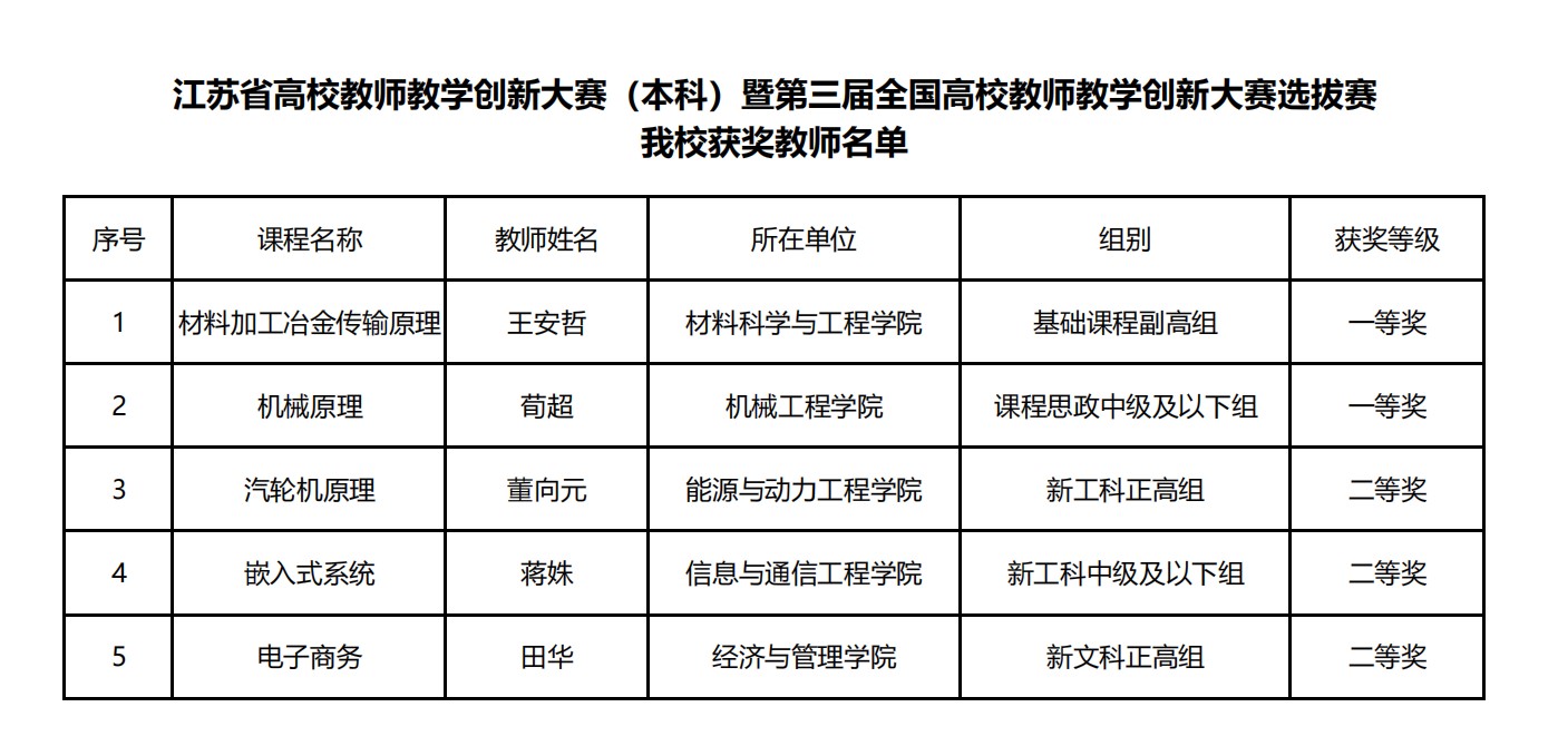 全国高校教师教学创新大赛由中国高等教育学会主办,教育部高等教育司指导,是经教育部批准、纳入《教育部直属单位三评一竞赛保留项目清单》的赛项之一。本届大赛全省共有75所本科高校报送了339项作品参赛,经省赛组委会组织专家组评审、组委会审定,最终评出个人(团队)特等奖45项、一等奖52项、二等奖72项。