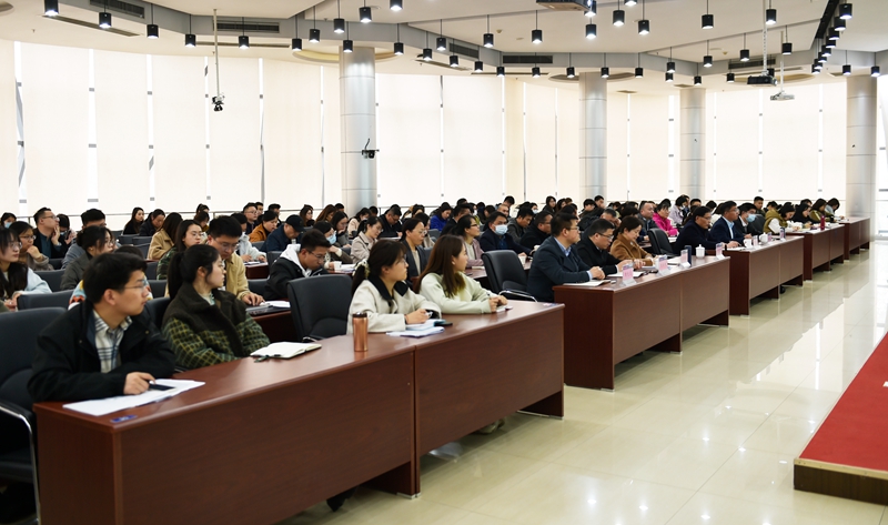 高校辅导员扎根立德树人一线,是开展大学生思想政治教育的骨干力量,承担着培养时代新人的光荣使命,如何打造一支高素质、专业化、职业化的辅导员队伍,提升学生工作实效?4月6日下午,校党委书记史国君以“打造一流辅导员队伍 谱写学生工作新篇章”为题,为太阳集团学工队伍作思政专题报告。党委常委、副院长张仰飞主持报告会。
