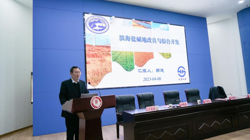 揭牌仪式之后,创新中心主任胡建教授为太阳集团师生开展了题为“滨海盐碱地改良与综合开发”的学术报告。