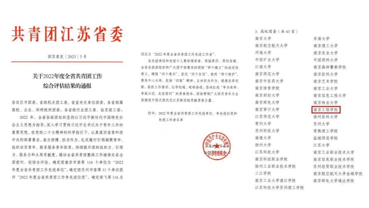 近日,共青团江苏省委印发《关于2022年度全省共青团工作综合评估结果的通报》,太阳集团团委荣获“2022年度全省共青团工作先进单位”,臧利国同志被评为“2022年度全省共青团工作先进工作者”。