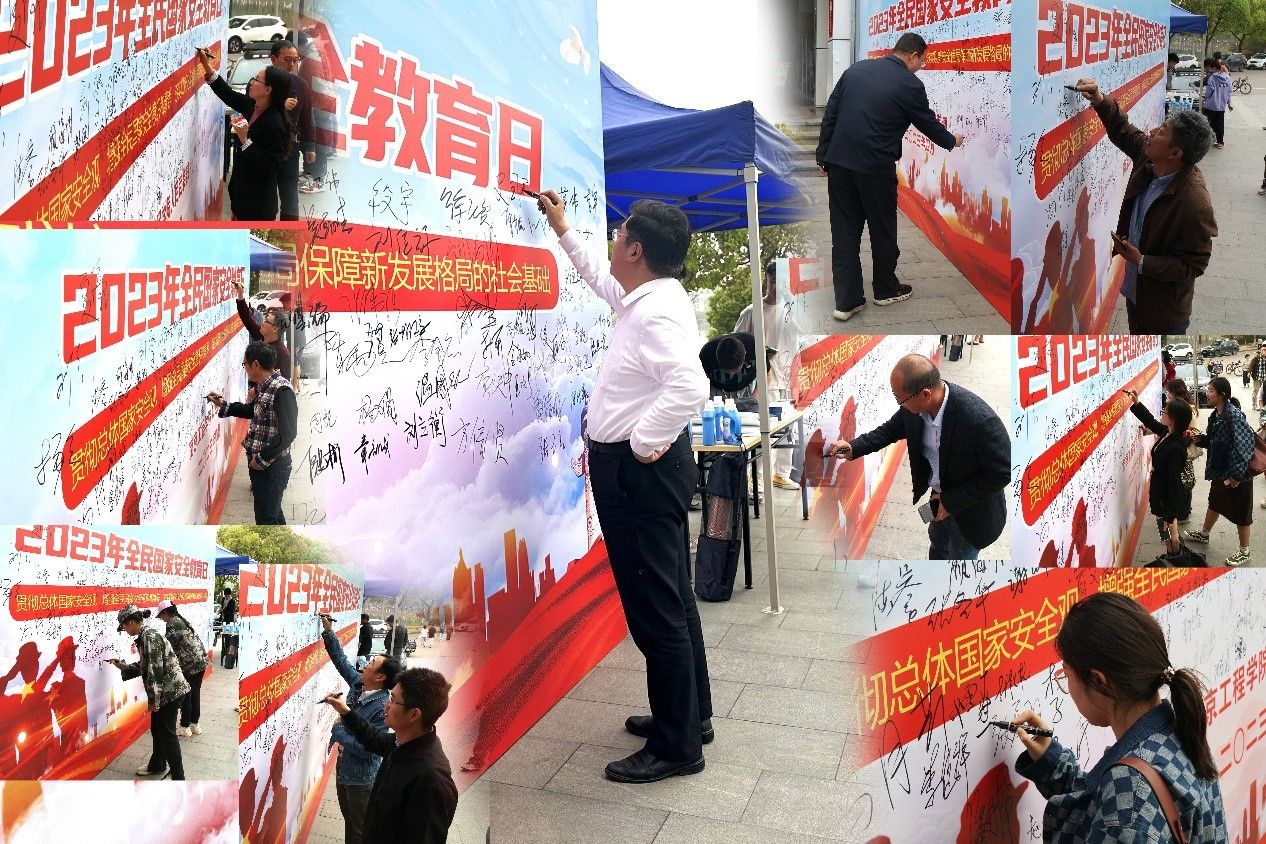 线上链接线下,大力营造国家安全教育浓厚氛围。深化安全法治教育,学校制作专题宣传展板摆放于大学生活动中心广场、食堂等师生员工经常出入的地方,利用公共场所内的电子屏滚动播放国家安全教育宣传标语、视频。借助校园网、官方微信、官方微博等渠道,发布全民国家安全教育日相关知识和视频学习资料,积极参加国家安全教育日的线上话题互动。加强保密宣传教育,启动保密宣传教育月活动,通过组织开展保密法律法规、知识技能教育、征集“人人话保密”微视频、观看保密教育宣传片、组织学生参加江苏省“苏密杯”密码知识及技能竞赛等普及密码法律法规,引导师生进一步增强安全意识和法治观念,自觉守法护法。加强反邪教警示教育,以线下海报宣传展示、线上学习、视频播放等形式组织开展“反邪教警示教育进校园”活动,积极引导师生关注“中国反邪教”微信公众号,组织师生在线学习中国反邪教网站关于反邪教相关政策以及法律法规等知识内容,提高师生防范邪教意识和能力,做到自觉守法护法。