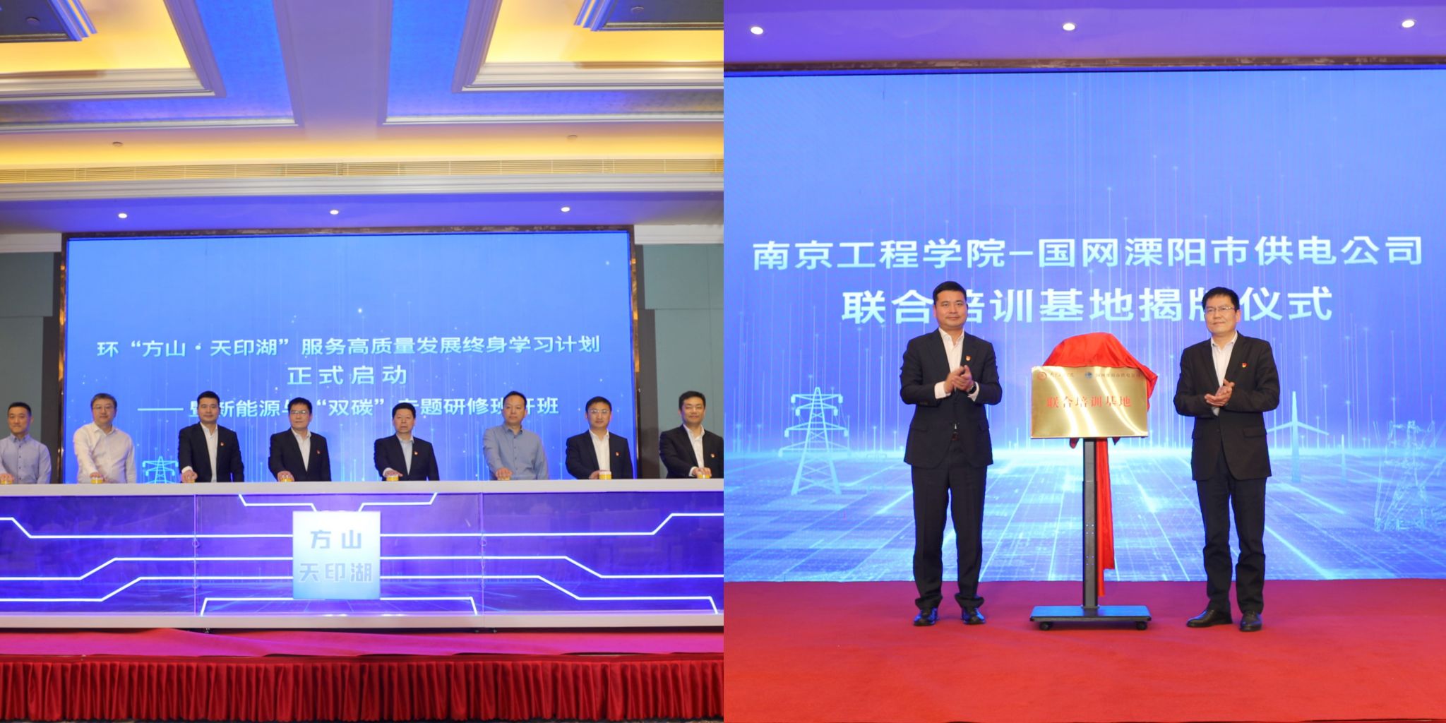 在与会领导嘉宾的共同见证下,15vip太阳集团官网环“方山•天印湖”服务高质量发展终身学习计划正式启动。濮励杰副书记与国网溧阳供电公司陆东生总经理携手为双方成立的联合培训基地进行揭牌。
