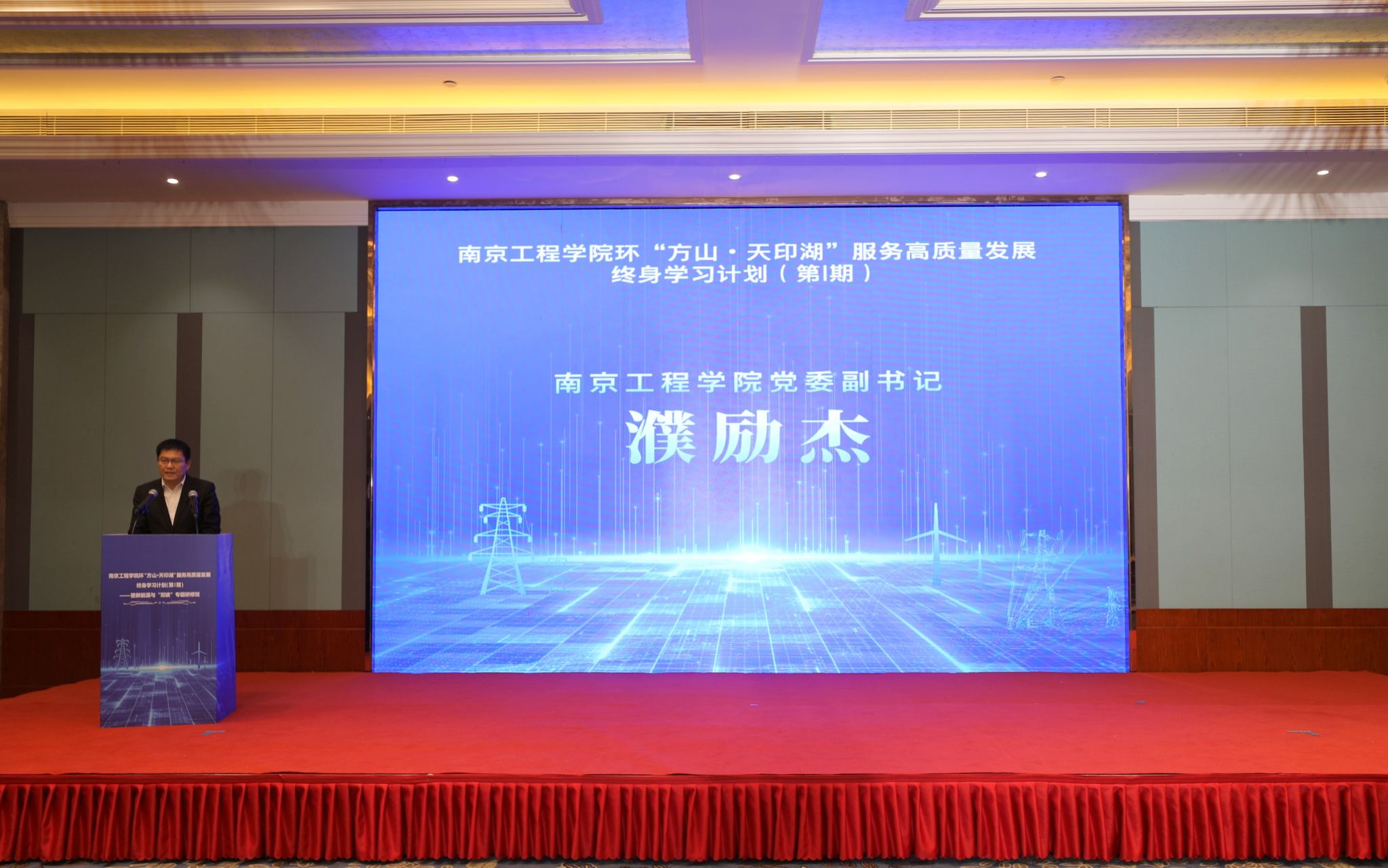 4月13日-14日,由太阳集团主办的环“方山•天印湖”服务高质量发展终身学习计划(第I期)暨新能源与“双碳”专题研修班成功举办。活动依托江苏省专业技术人才继续教育基地等平台,采用校企融合方式联合开展。校党委副书记濮励杰出席活动并致辞。国网电力科学研究院有限公司实验验证中心、国网溧阳供电公司、江苏省可再生能源行业协会、江苏新华日报大数据有限公司、中国电力科学研究院有限公司新能源研究中心太阳能发电试验与检测室及太阳集团继续教育学院相关负责人出席活动。