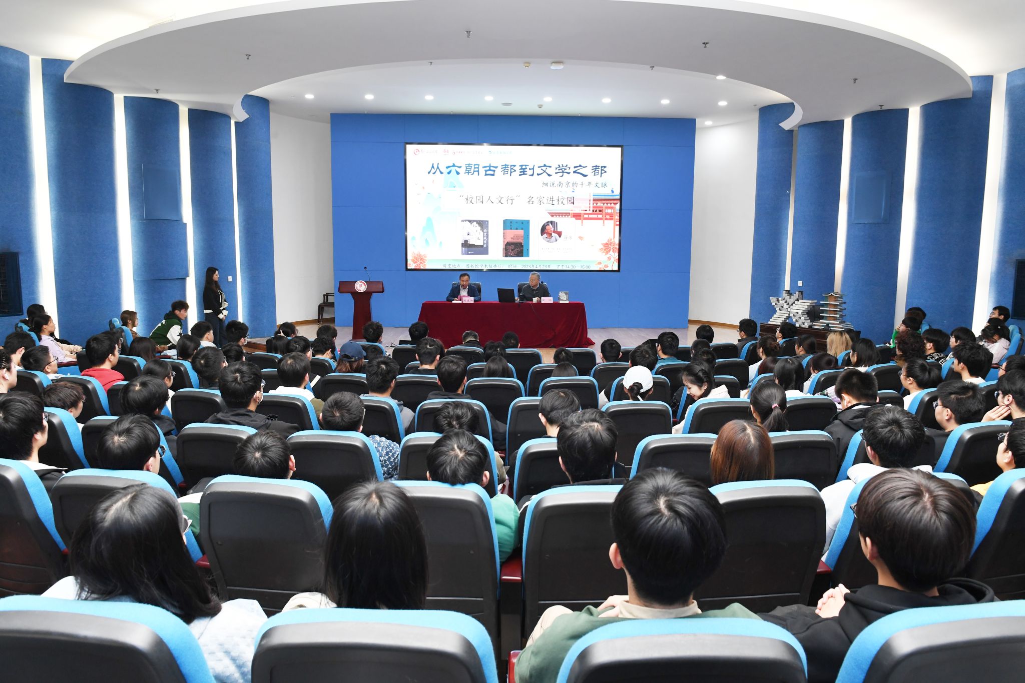 图书馆馆长刘建新在讲座现场表示,南京不止有烟水气,还有象征着历史的砖瓦。同学们在“读万卷书”的同时要“行万里路”,闲暇之余走遍南京的大街小巷,去阅读南京、了解南京、宣传南京的文化。同时,他希望全校师生积极响应党的二十大精神和习近平总书记在致首届全民阅读大会贺信中关于“深化全民阅读”的要求,参与到太阳集团读书节活动中,共同推动形成“好读书、读好书、善读书”的浓厚书香氛围。