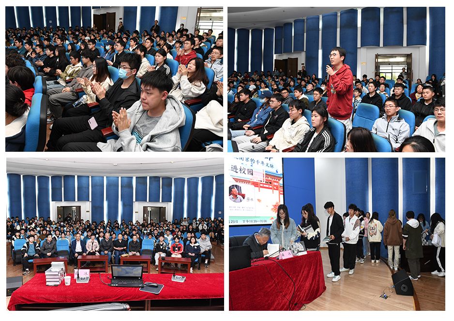 有着“薛金陵”之称的薛冰先生著有长篇小说《城》《盛世华年》,文化随笔集《家住六朝烟水间》《漂泊在故乡》《书生行止》《拈花意》及专著《南京城市史》《格致南京》《秦淮河》等六十余部作品,是南京文脉的优秀传承者、中国文学的积极发扬者。讲座现场,薛冰从三千多年前的江宁湖熟文化谈起,讲述了东吴、东晋到南朝的文学创作、文学理论、文学作品以及文学教育,从历史的深处观照六朝南京在“立文学规范”方面的深远影响;从李白的《登金陵凤凰台》到李商隐的《南朝》,从南唐二主词到宋元词曲……薛冰通过列举大量作品,让师生们体会到山明水秀的金陵一直吸引着大量文学巨匠来这里寻文学正统,可谓“文脉绵延,成果辉煌”;“六朝古都、十代都会、博爱之都……”历史名城南京拥有众多名号,在薛冰先生看来,“世界文学之都”是南京最为响亮的头衔,无论是历史文化、当代出版,还是文学交流、文学出版,南京都无愧于“世界文学之都”称号。秦淮河、紫金山、大报恩寺、海丝遗迹,鲁迅、胡小石、余光中、赛珍珠,《桃花扇》《儒林外史》《红楼梦》《闲情偶记》……南京的山川名胜、人物风流、优秀作品在讲座中化作优美史话,深深地吸引着在场师生。