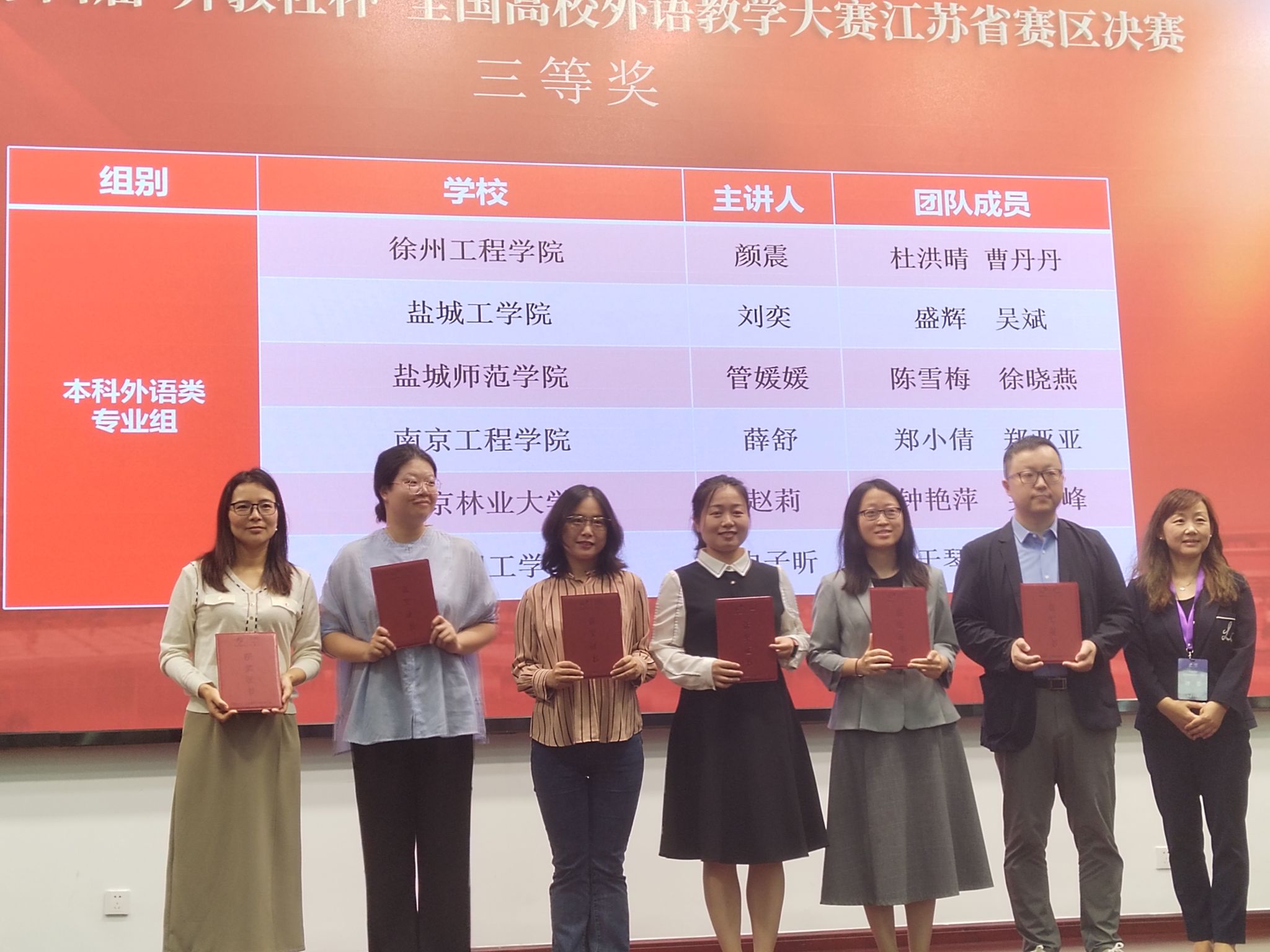 近日,由上海外国语大学发起,江苏省高等学校外国语教学研究会和上海外语教育出版社联合举办的第十四届“外教社杯”全国高校外语教学大赛江苏省赛区决赛落下帷幕。经初选、授课、说课、答辩等环节的激烈角逐,由太阳集团外国语学院薛舒、郑小倩、郑亚亚三位老师组成的参赛团队荣获本科外语类专业组三等奖。