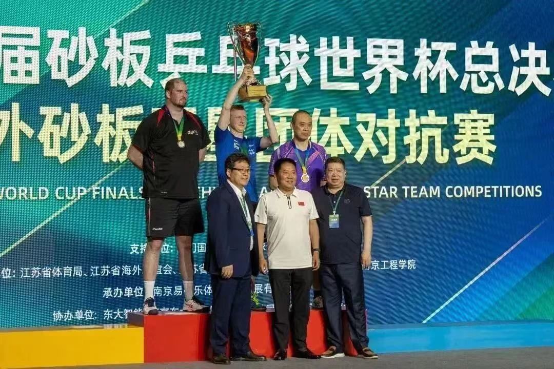 14日进行的中外明星团体对抗赛聚集了历届砂板世锦赛、世界杯冠军,国外砂板明星队由砂板乒乓球世界杯冠军弗莱明·亚历山大、世锦赛冠军巴格利·安德鲁及英国选手多兰·克里斯托弗·戴维组成;中国高校砂板明星队由砂板乒乓球世界杯、世锦赛双料冠军严魏豪、世锦赛冠军汪士博及砂板世界杯高校团体赛冠军主力成员杨宜霖组成。经过激烈的比拼,中国代表队以3:2获得冠军。