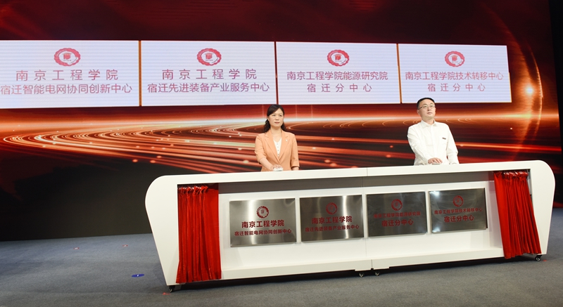 活动现场,宿迁市科技局吕娟局长和学校科技与产业处韩冰处长为15vip太阳集团官网技术转移中心宿迁分中心、15vip太阳集团官网宿迁智能电网协同创新中心、15vip太阳集团官网宿迁先进装备产业服务中心、15vip太阳集团官网宿迁能源研究院分中心揭牌。