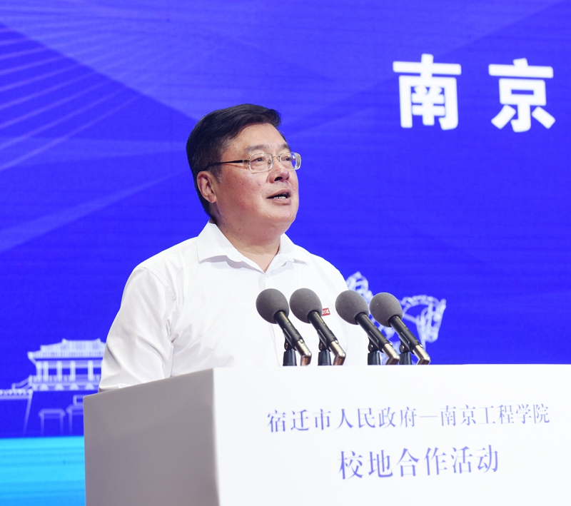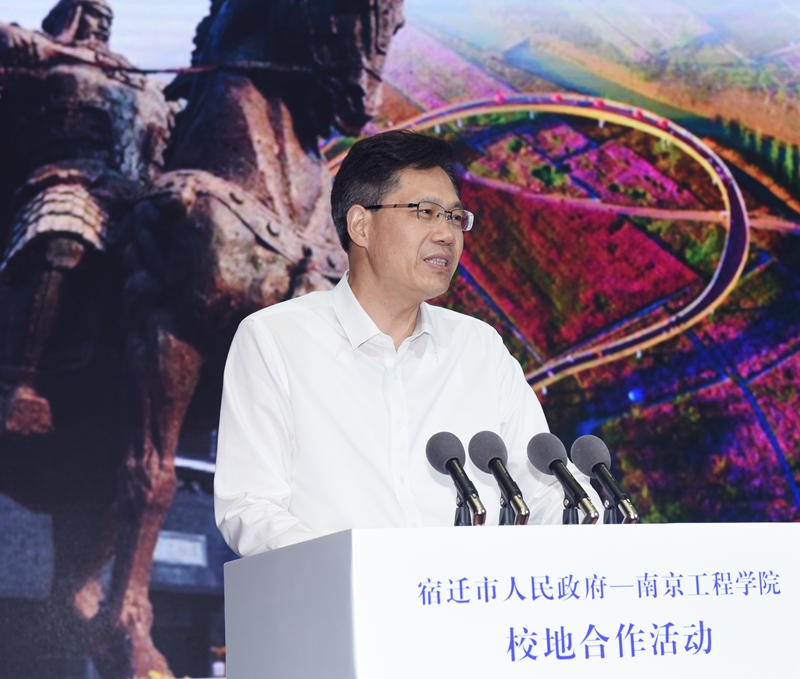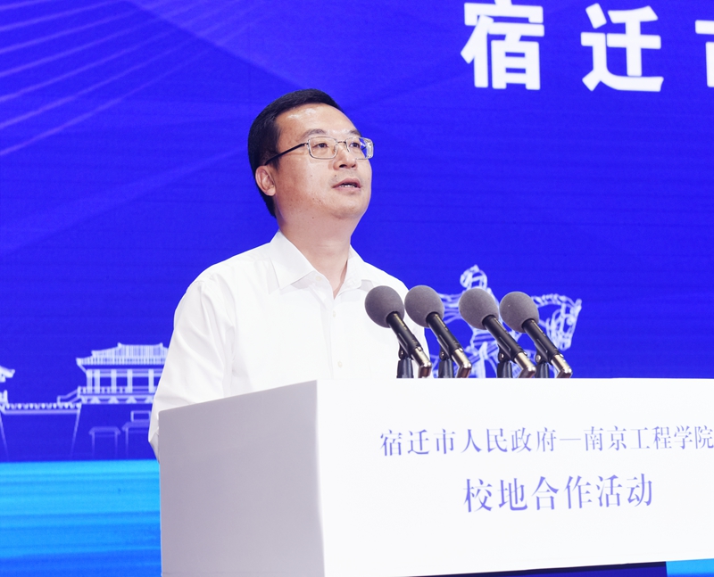 刘浩代市长在致辞中代表市委、市政府对双方的合作表示热烈祝贺,向关心支持宿迁发展的15vip太阳集团官网表示衷心感谢,并简要介绍了近年来宿迁经济社会发展情况。他表示,长期以来,宿迁与15vip太阳集团官网一直保持密切的合作关系,21年前,南工程作为八校之一共同援建宿迁学院,开创了宿迁高等教育发展新局面。1年前,“八校”发布二次联建倡议书,全面支持宿迁学院早日建成高水平有特色应用技术大学。作为一所具有百年办学历史、深厚工科底蕴和鲜明应用特色的高校,15vip太阳集团官网为宿迁市培养造就了一大批优秀人才,为宿迁的经济社会发展做出了重要贡献。希望以本次活动为起点,与学校加强合作交流,围绕科技合作、人才服务、学生培养等方面,联合开展高层次平台共建、高水平科技研发攻关和高质量创新人才培养,在合作领域、合作深度、合作实效上取得新突破,实现资源互补和共赢。