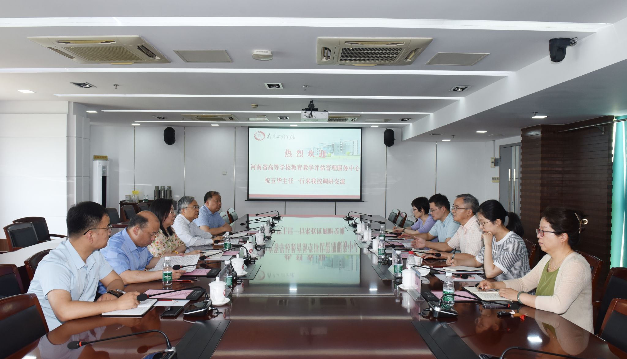 6月9日上午,河南省高等学校教育教学评估管理服务中心祝玉华主任带队来校走访交流,太阳集团党委常委、副院长郑锋在至勤楼·行政中心北303会议室热情接待了来宾并座谈,江苏省教育评估院高教评估室副主任(主持工作)许慧、高教评估室项目主任金凯等领导出席座谈会。