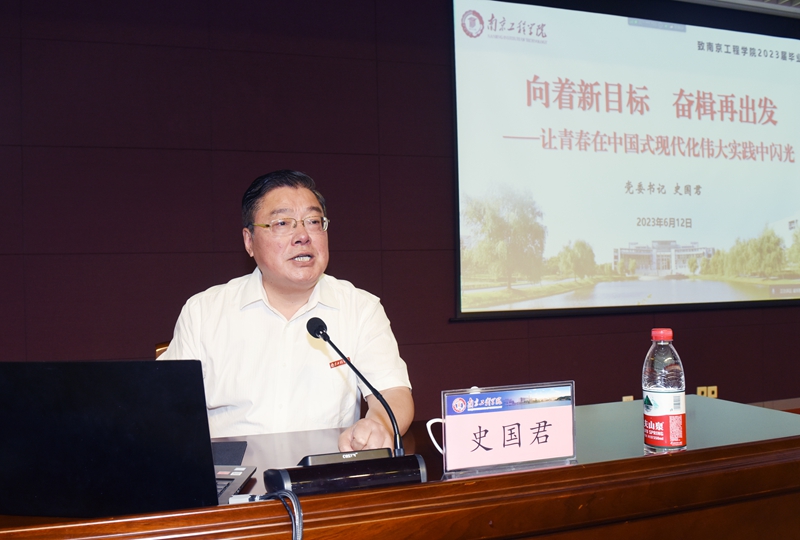 荷风送香气,竹露滴清响,初夏时节,天印湖畔骊歌又起,2023届毕业生踌躇满志整装待发,即将带着南工程学子的使命担当书写新的人生篇章。6月12日上午,校党委书记史国君在至勤楼·行政中心二楼多功能厅为2023届毕业生讲授毕业一课,勉励大家向着新目标,奋楫再出发,让青春在中国式现代化伟大实践中闪光。