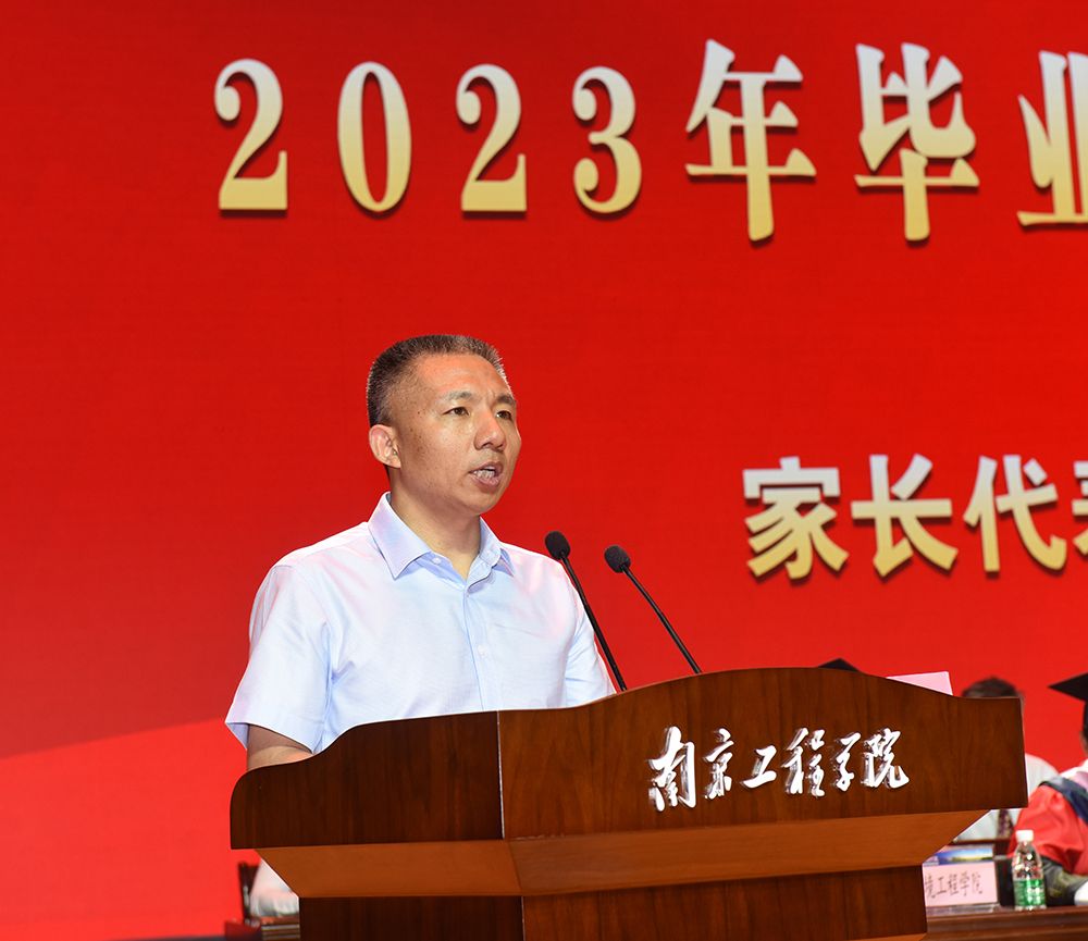 “作为1993届校友,我为学校的每一步发展感到自豪;作为学生家长,我为孩子的每一滴进步感到欣慰!”电力工程学院继保191班朱天乐同学的父亲朱建宝作为毕业生家长代表发言。他从“校友”与“家长”的双重身份出发,希望同学们学以致用,始终怀着感恩之心去面对挑战和困难,不负青春、不负韶华、不负时代。