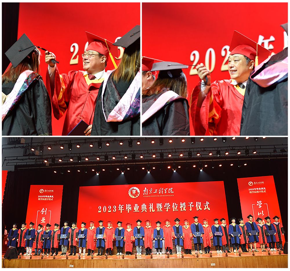 台下,毕业生们纷纷与师长和同窗彼此拥抱和祝福,并合影留念,依依不舍之情溢于言表。会场内外,循环播放的2023年南工程毕业歌、缤纷灿烂的鲜花、创意十足的打卡点,无不流露着学校浓浓的心意,讲述着学子的点滴成长,礼赞着天印湖畔的逐梦时光。
