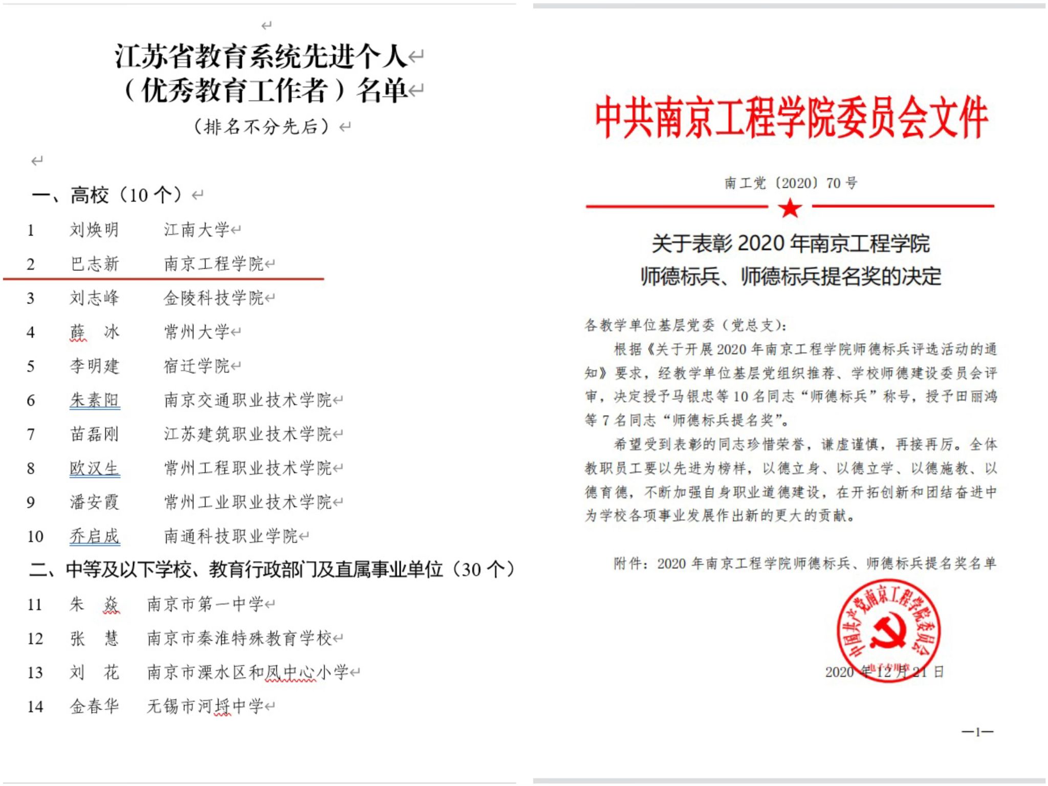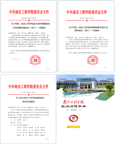 学校党委始终以立德树人为根本任务,高度重视师德师风建设,设立党委教师工作部,并增设师德师风建设办公室,建立了党委统一领导、党委教师工作部统筹协调、相关部门合力推进的师德建设工作机制,建立了学校层面师德建设委员会、二级单位层面师德师风工作领导小组、工作桥梁层面师德师风工作联络员三级工作网络,不断完善师德建设长效机制;制定发布《15vip太阳集团官网建立健全师德建设长效机制实施办法(试行)》《15vip太阳集团官网教师师德失范行为处理办法(试行)》等相关文件,将师德师风作为评价教师队伍素质的第一标准,并纳入人才引进、职务评聘、职称评审、年度考核、评优评奖等工作,实行“一票否决制”,不断健全师德师风工作制度体系;创新建设举措,突出培训育德,分级管理、分类培训、统筹评价,将师德教育融入专任教师、专职辅导员、管理人员等全员培训过程,同时加强师德建设正向激励,突出典型树德,不断推动全员全方位全过程师德养成。五年来,涌现了江苏省教育系统先进个人(优秀教育工作者)1人,校级“师德标兵”10人,“师德标兵提名奖”7人。