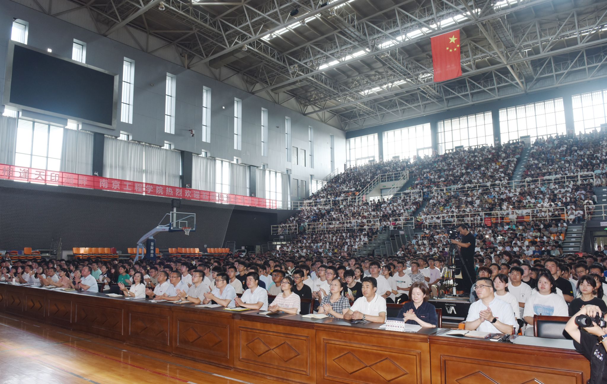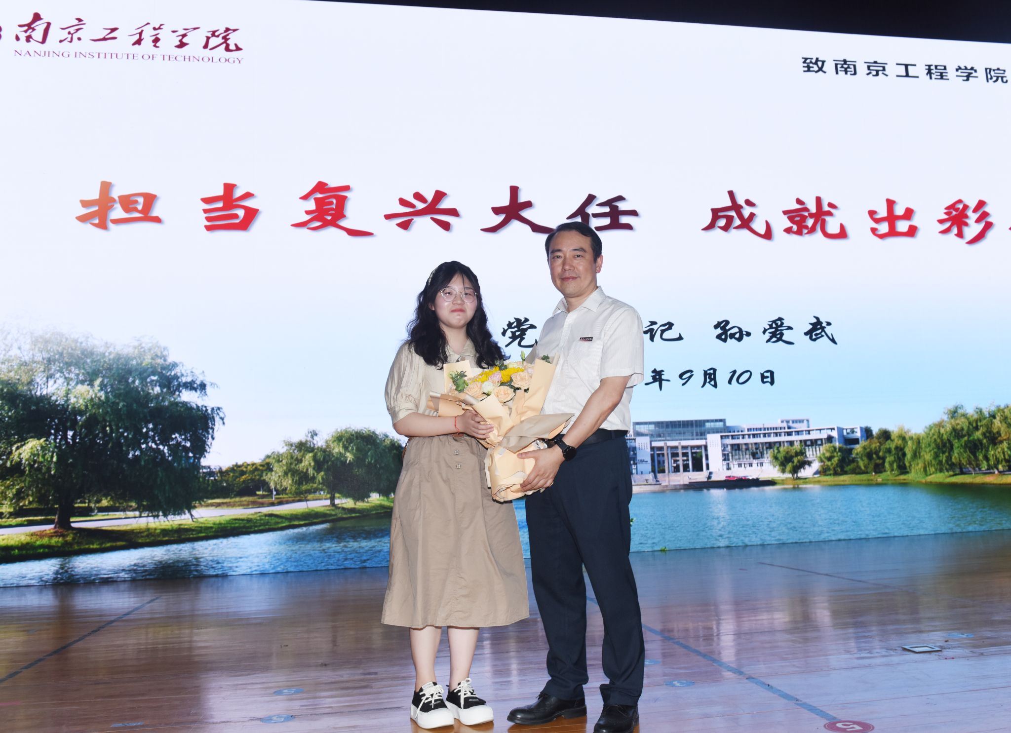 机械工程学院、能源与动力工程学院等八个学院(中心)的3000余名新生聆听了报告,同学们认真聆听、细心领会、深入思考,现场不时响起热烈的掌声。讲座当天正值第39个教师节,新生代表还为孙爱武赠送鲜花感念师恩。