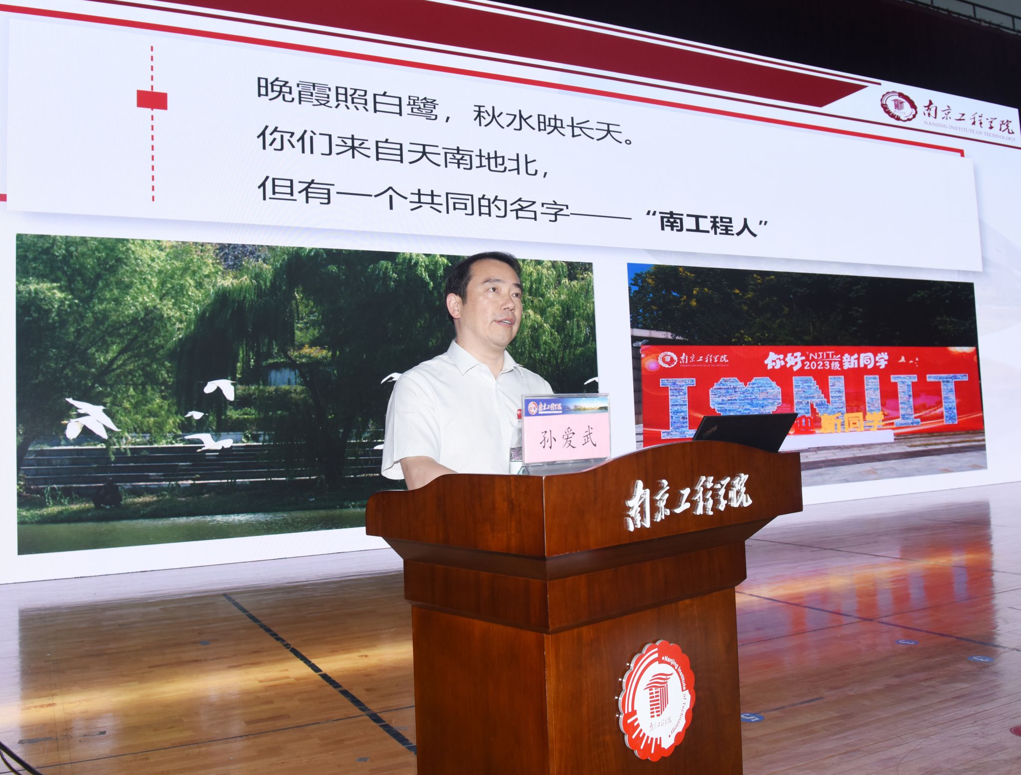 面对时代赋予的新机遇,学校搭建的新平台,“新南工程人”如何强化思想引领、勇做新时代有为新青年?孙爱武指出,树立崇高信仰,是坚定理想信念的使命追求;胸怀家国情怀,是坚持人民至上的价值追求;夯实专业基石,是增长知识才干的本领追求;坚持知行合一,是投身强国伟业的实践追求。他结合钱学森、钟南山等时代楷模爱国报国的不懈追求,太阳集团何少华、顾卫东、匡华飞等优秀校友的先进事迹,勉励广大新生要坚定不移听党话、跟党走,怀抱梦想又脚踏实地,敢想敢为又善作善成,立志做有理想、敢担当、能吃苦、肯奋斗的新时代好青年,在强国建设、民族复兴的新征程上唱响青春之歌。