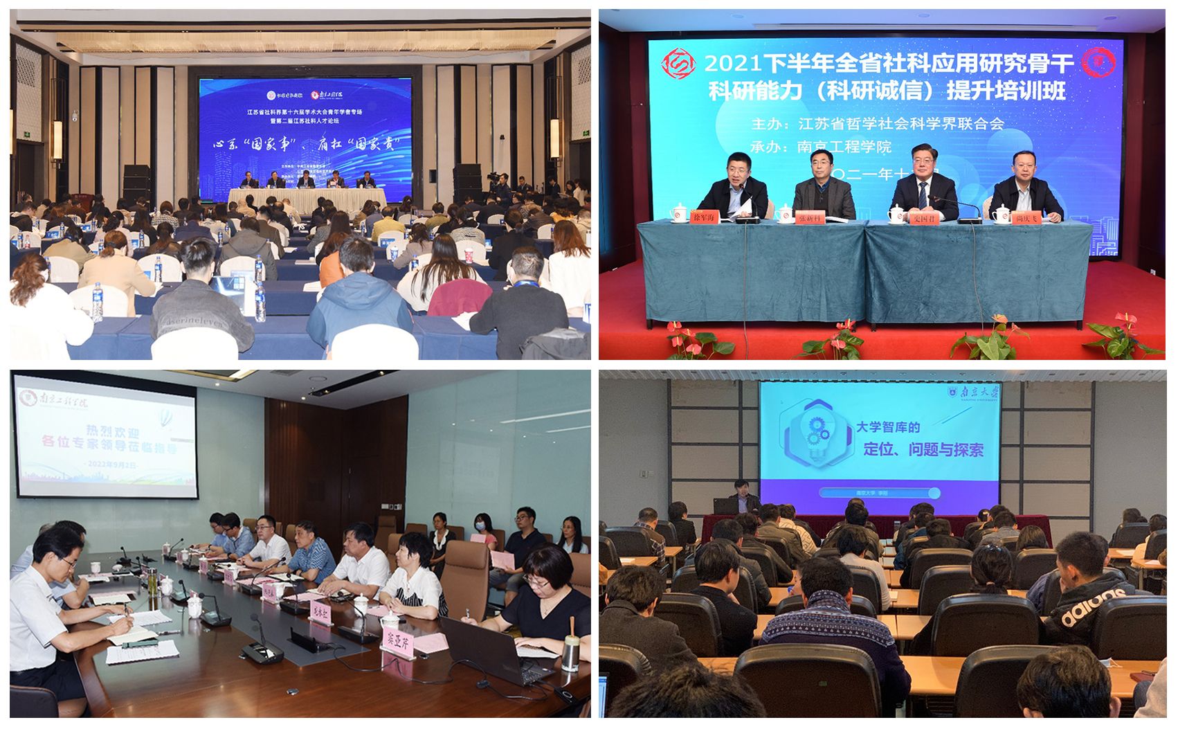 充分发挥学校党政联系全校科技工作者的桥梁和纽带作用,以校科协、校社科联为组织支撑,推进校内外科学研究力量融合互动,举办多层次学术交流活动,推动学科交叉融合和智库研究。省部级以上社科研究项目获批数量近三年逐步提升,其中,交叉学科类省部级项目10项;获批2个省级智库基地,8篇咨询报告获省领导肯定性批示或被相关政府部门应用采纳,2项成果获江苏省智库研究与决策咨询优秀成果奖;7项成果获江苏省社科应用研究精品工程优秀成果奖,其中,一等奖3项;江苏省哲学社会科学优秀成果奖实现突破,2次获得江苏省社科界学术大会优秀组织奖。