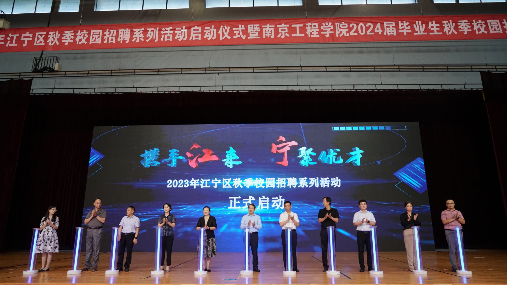 孙爱武为活动致辞。他代表学校对莅临活动的各位领导、嘉宾、老师和学生表示热烈欢迎,他指出,就业是最重要的民生工程,高质量就业是每个学生家庭最热切的期盼和最重要的幸福。作为全国就业典型经验高校,学校高度重视,建立健全“一把手示范引领、各条线全员聚力、政校行协同推进、创带就提升成效”的工作机制,交出了“稳就业保就业”的满意答卷。他表示,学校将进一步发挥地区合作优势和产学研办学特色,持续关注地方企业的人才需求,搭建各类大学生就业、创业互动平台,为江宁属地企业更多更好地输送优质工程应用型人才。