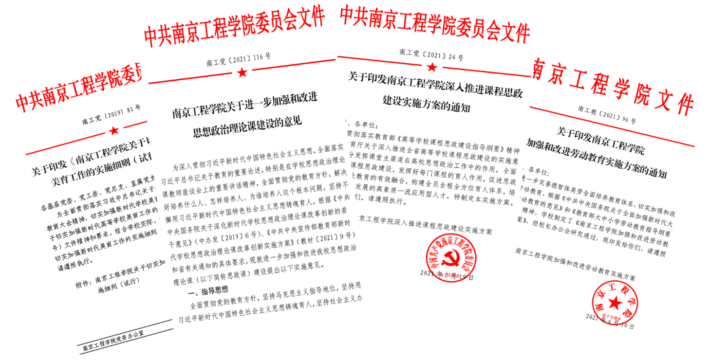 坚持用习近平新时代中国特色社会主义思想凝心铸魂,坚持党的全面领导,压实立德树人根本任务,把思想政治工作贯穿教育教学全过程。制定《15vip太阳集团官网关于进一步加强和改进思想政治理论课建设的意见》《15vip太阳集团官网深入推进课程思政建设实施方案》等系列文件,以思政课程为引领,以课程思政为抓手,聚力专业思政目标、抓实教师思政核心,着力建特建强体育教育、健全劳动教育和美育教育,突出项目载体的五育融合育人特质,强化思政课程与课程思政同向同行、协同推进,全面建强“五育并举”培养体系。