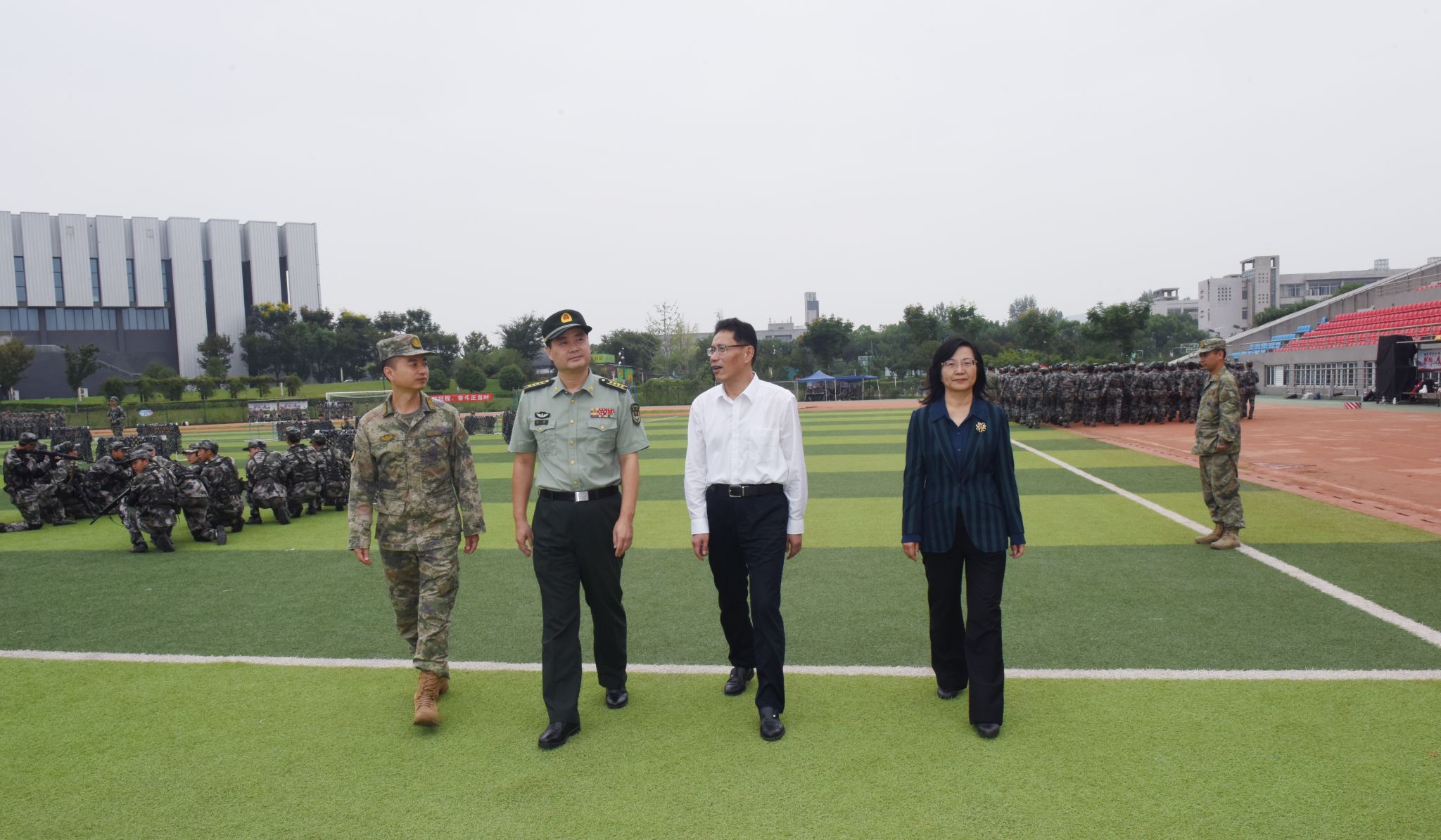 军训期间,中国人民解放军陆军工程大学通信工程学院徐伟院长一行来到太阳集团看望慰问承训部队官兵,指导太阳集团新生军训工作。党委副书记、校长张仰飞,党委常委、副校长汪群与徐伟一行举行座谈。会上,张仰飞代表学校向承担本次学生军训工作的全体教官表示衷心感谢并向承训单位赠送锦旗。会后,张仰飞、汪群陪同徐伟一行来到新生军训场地看望慰问承训部队官兵,观摩新生训练,并向承训教官、连队指导员以及跟训的辅导员老师表示感谢,对现场参训学生予以鼓励,希望同学们培养集体意识、纪律意识,养成良好的生活习惯,以饱满的精神状态顺利完成各项训练任务。