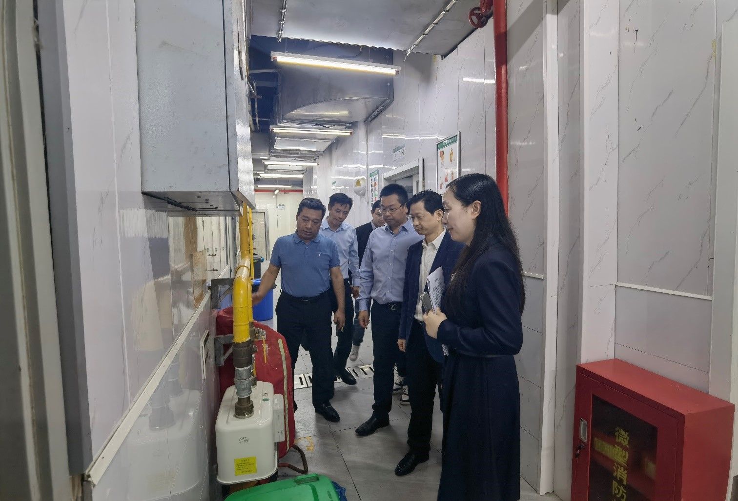 专家组通过实地察看、查阅台账等方式对太阳集团燃气安全工作情况进行了检查,重点检查了食堂后场燃气管道、灶具、阀门、燃气泄漏报警系统、自动灭火设施、燃气安全消防通道等情况,以及燃气安全检查值班、巡查台账记录。