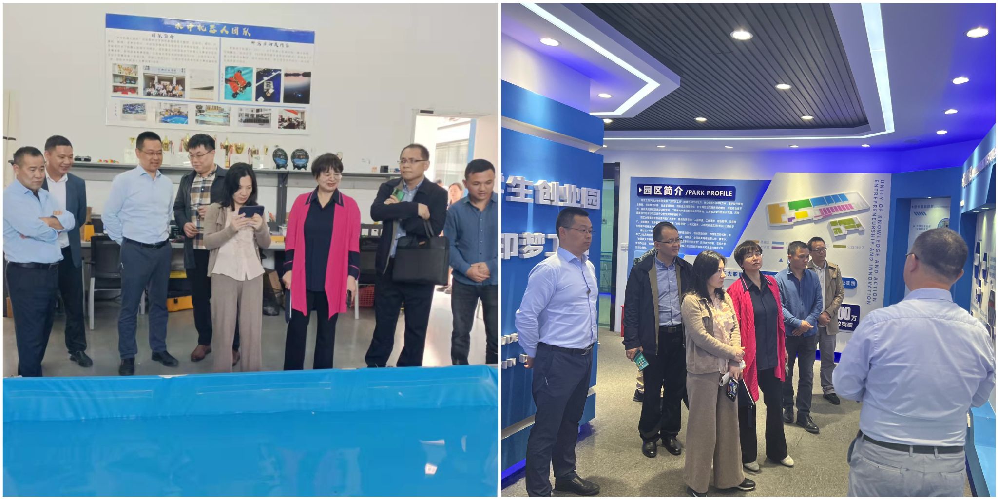 会前,盛正发一行参观了创新创业学院和大学生创业园“天印梦工场”。