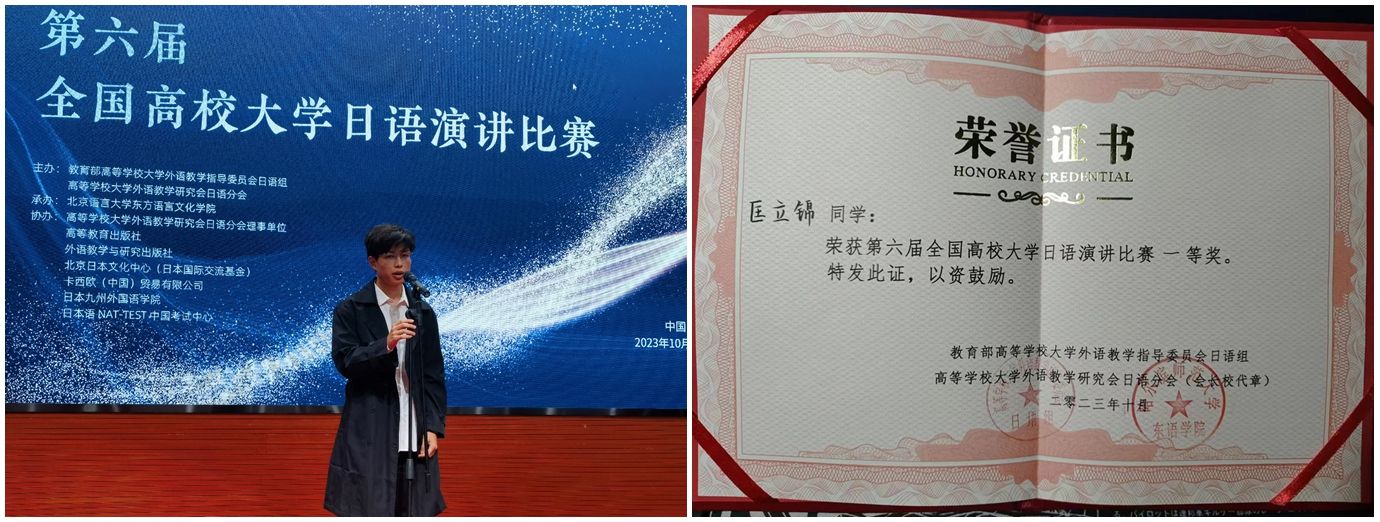 近日,第六届全国高校大学日语演讲比赛在北京语言大学圆满落幕。经过激烈角逐,太阳集团能源与动力工程学院匡立锦同学荣获一等奖的好成绩,这也是学校自参加该项赛事以来取得的最好成绩。