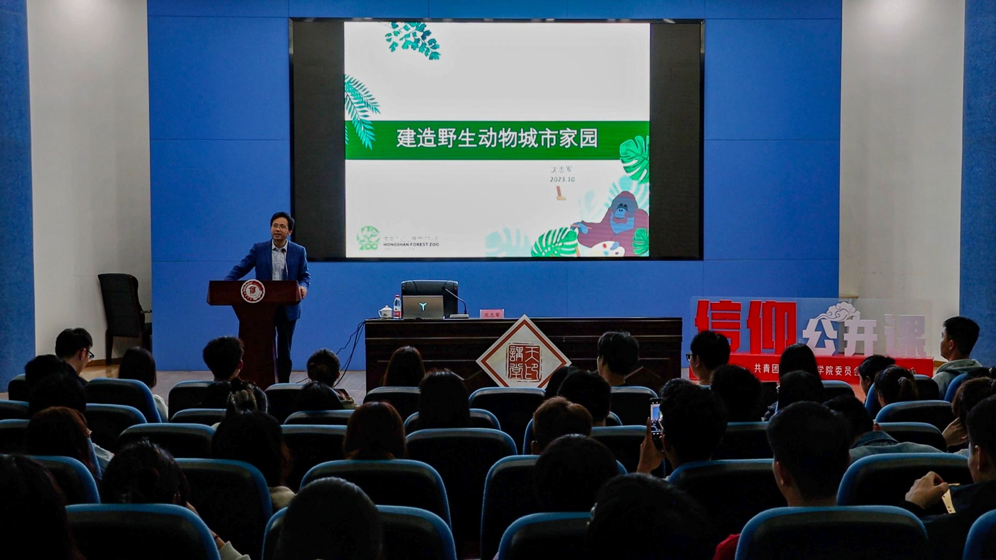 10月26日晚,太阳集团2023-2024学年首场天印讲堂暨信仰公开课在图书馆报告厅举行。南京市红山森林动物园园长沈志军以“建造野生动物城市家园”为题,将太阳集团200余名师生带入动物的世界,领略红山森林动物园缔造的野生动物城市家园。