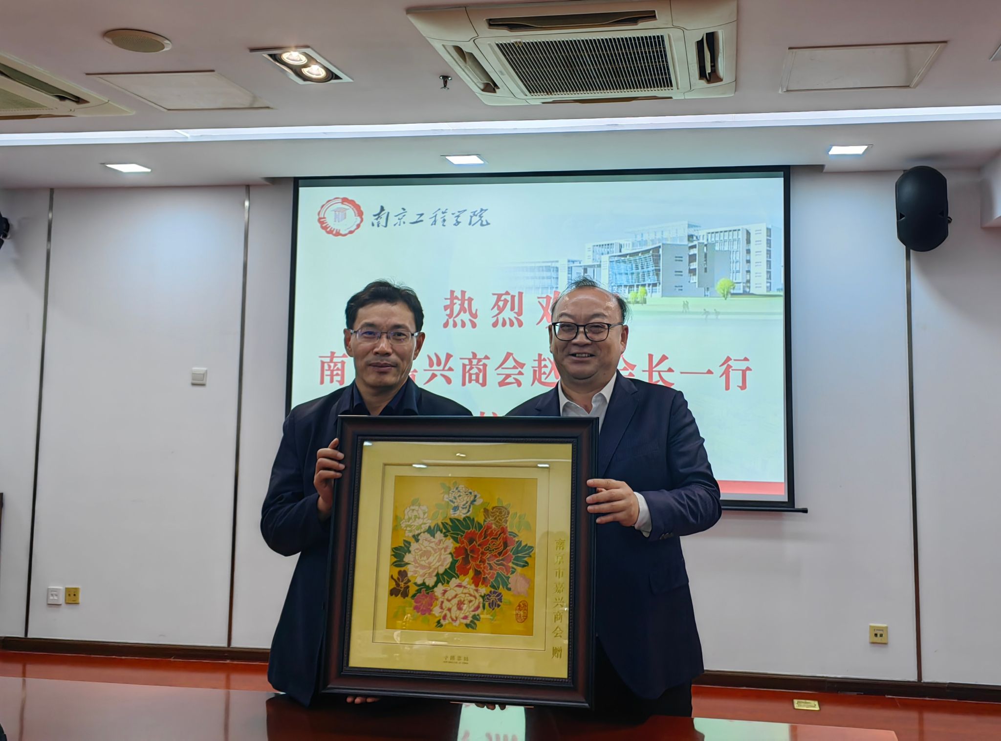 赵刚对学校近年来取得的丰硕成绩表示赞赏,并代表嘉兴商会衷心感谢学校一直以来的大力关注与支持。他介绍了南京市嘉兴商会的基本情况,并表示,搭建商会与高校合作桥梁,是新时代背景下落实国家产教融合战略,助力企业转型升级的重要举措,对推动企业高质量发展具有重要意义。他希望能充分发挥南京市嘉兴商会桥梁纽带作用,提供就业岗位及合作资源,助力学校教育事业发展。