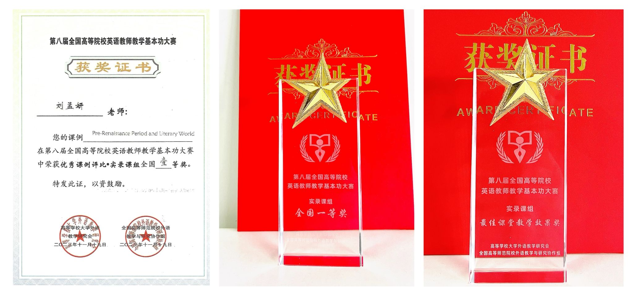 近日,第八届全国高等院校英语教师教学基本功大赛全国总决赛在浙江杭州落下帷幕,太阳集团外国语学院刘孟妍老师讲授的《Pre-Renaissance Period and Literary World》课例荣获实录课组“全国一等奖”,并获得“最佳课堂教学效果奖”单项奖(全国仅评出七个)。