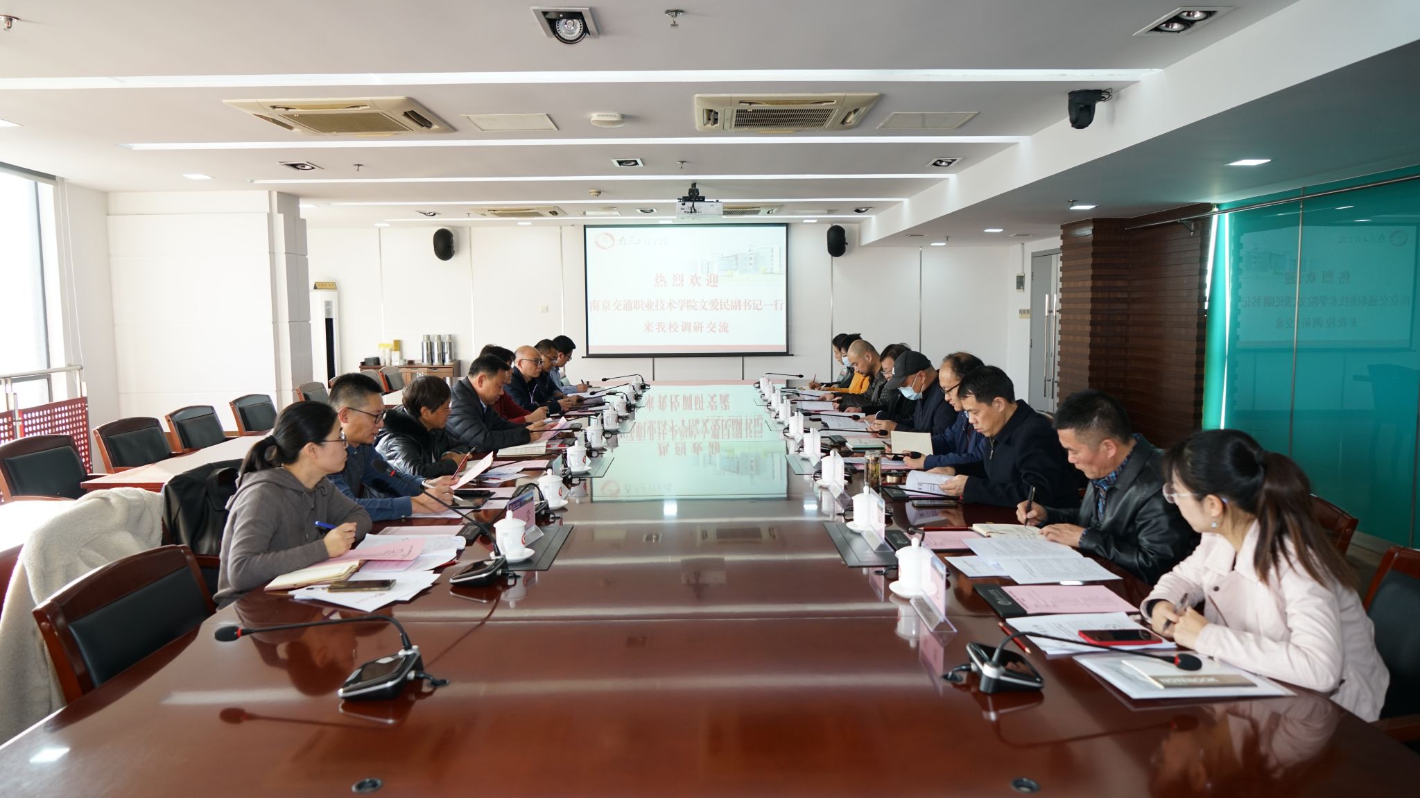 11月21日下午,南京交通职业技术学院党委副书记文爱民一行来太阳集团就两校实施中的省职业教育体系贯通培养项目开展研讨交流交流。学校组织发展与对外合作处、教务处和校内承担相关项目的经济与管理学院、建筑工程学院、汽车与轨道交通学院、艺术与设计学院负责人,在至勤楼·行政中心北楼303会议室热情接待了来宾并座谈。