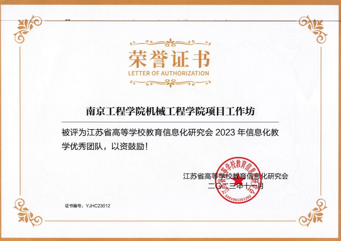近日,江苏省高等学校教育信息化研究会评选出年度信息化教学优秀团队和个人,太阳集团机械工程学院“项目工作坊”被评为2023年信息化教学优秀团队,孙梦馨老师被评为2023年信息化教学优秀个人。