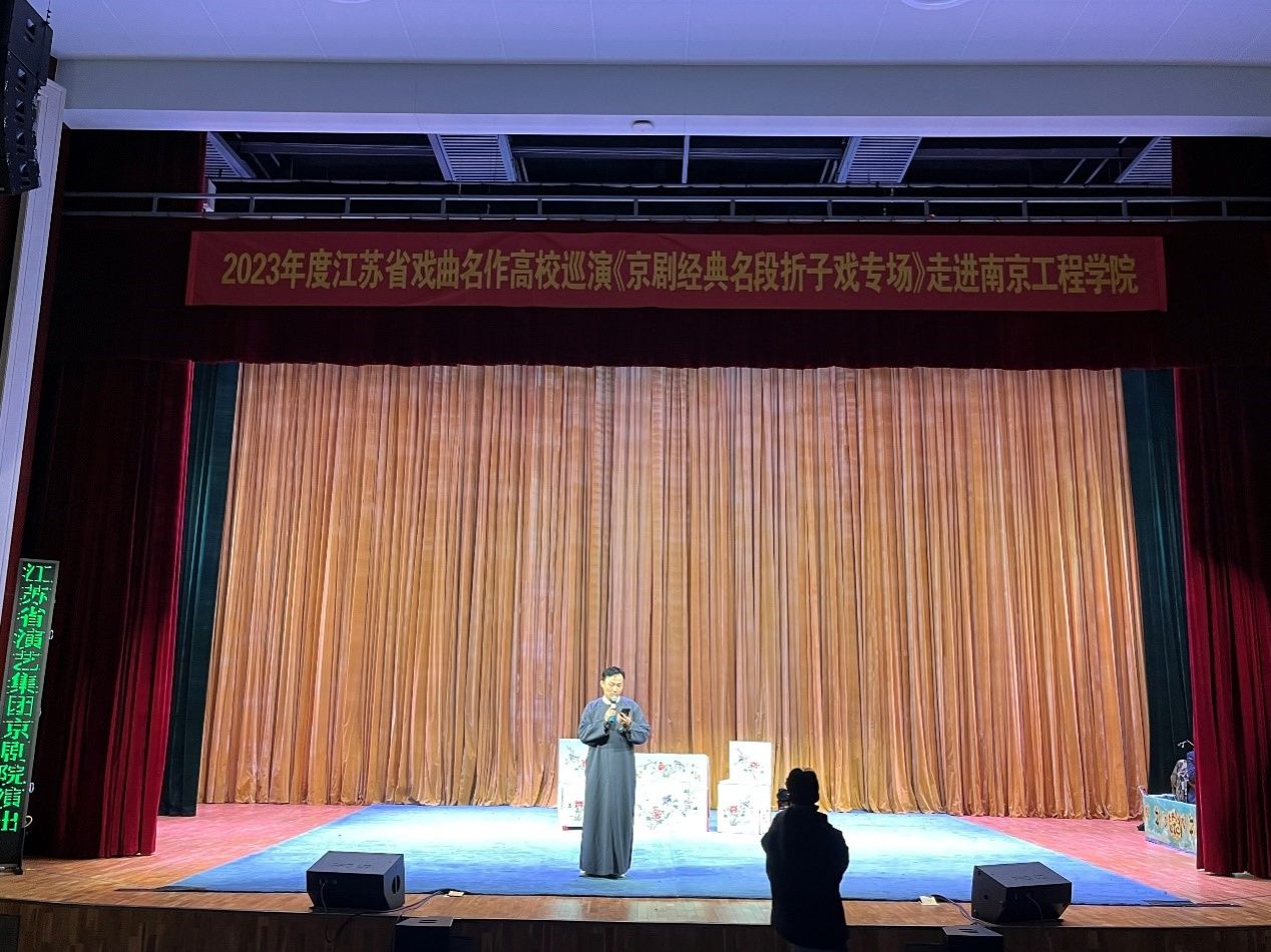 为深入学习贯彻习近平文化思想,更好传承和弘扬中华优秀传统文化,推动学校一流校园文化工程建设,12月15日晚,由江苏省委宣传部、江苏省教育厅指导,江苏省演艺集团京剧院京剧经典名段折子戏专场在太阳集团科创园学术报告厅上演,共有师生代表500余人观看演出。