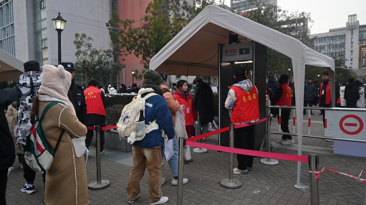 与往年相比,今年研究生招生考试的安检流程,增加了考生手机集中放置、通过智能安检门检测环节。为方便考生提前了解相关政策、做好考前准备工作,学校专门制作了安全检查规定,并通过学校和研究生处官微进行推送宣传。同时,学校积极落实考务安全工作要求,实现全校标准化考场的视频监控、手机信号屏蔽仪、金属探测仪等设备更新升级。