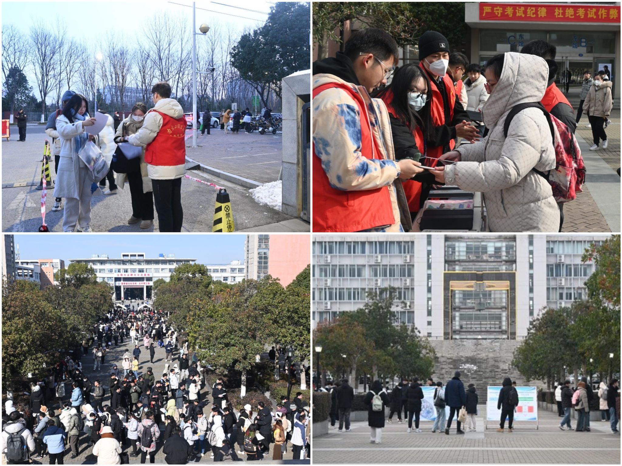 本着服务学生的宗旨,学校在考前及考试期间推行多项暖心举措,为寒冬里的研考保驾护航。提前发布考点信息、增设校园道路交通指引、安排志愿者引导以及校园小公交接送、安排校外考生专用食堂及休息区域、配备考试医疗应急保障人员等,实现考务组织工作既“严”又“暖”。