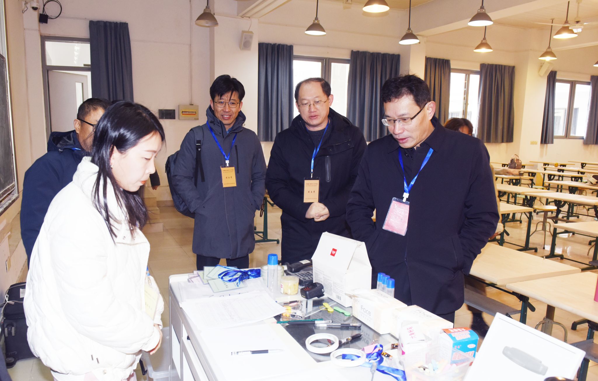 开考前,党委副书记、校长张仰飞,党委常委、副校长赵文祥及相关职能部门负责人走进视频监控中心、考务办公室及考场区域,逐一检查各项准备工作完成情况,并慰问一线工作人员。张仰飞感谢大家在严寒中坚守岗位,要求各部门充分认识考试的权威性和严肃性,增强政治意识,强化责任担当,慎终如始、通力协作,为考生提供暖心服务,确保完成“三无三稳三确保”目标任务。