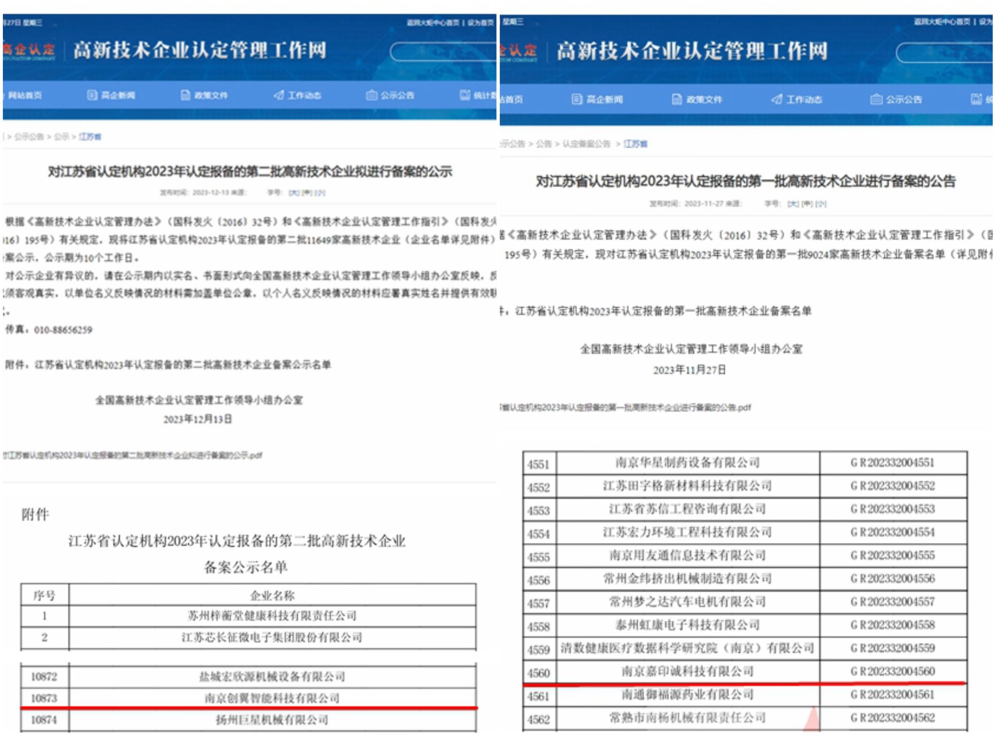 日前,国家科技部火炬高技术产业开发中心对江苏省认定机构2023年认定的第一批9024家和第二批11649家高新技术企业进行了备案公示,太阳集团大学生创业园“天印梦工场”在孵企业:南京嘉印诚科技有限公司(法定代表人:尹全菊)和南京创翼智能科技有限公司(法定代表人:陈庆武)成功获批。至此,太阳集团大学生创业园“天印梦工场”累计成功孵化国家高新技术企业数量已达11家。