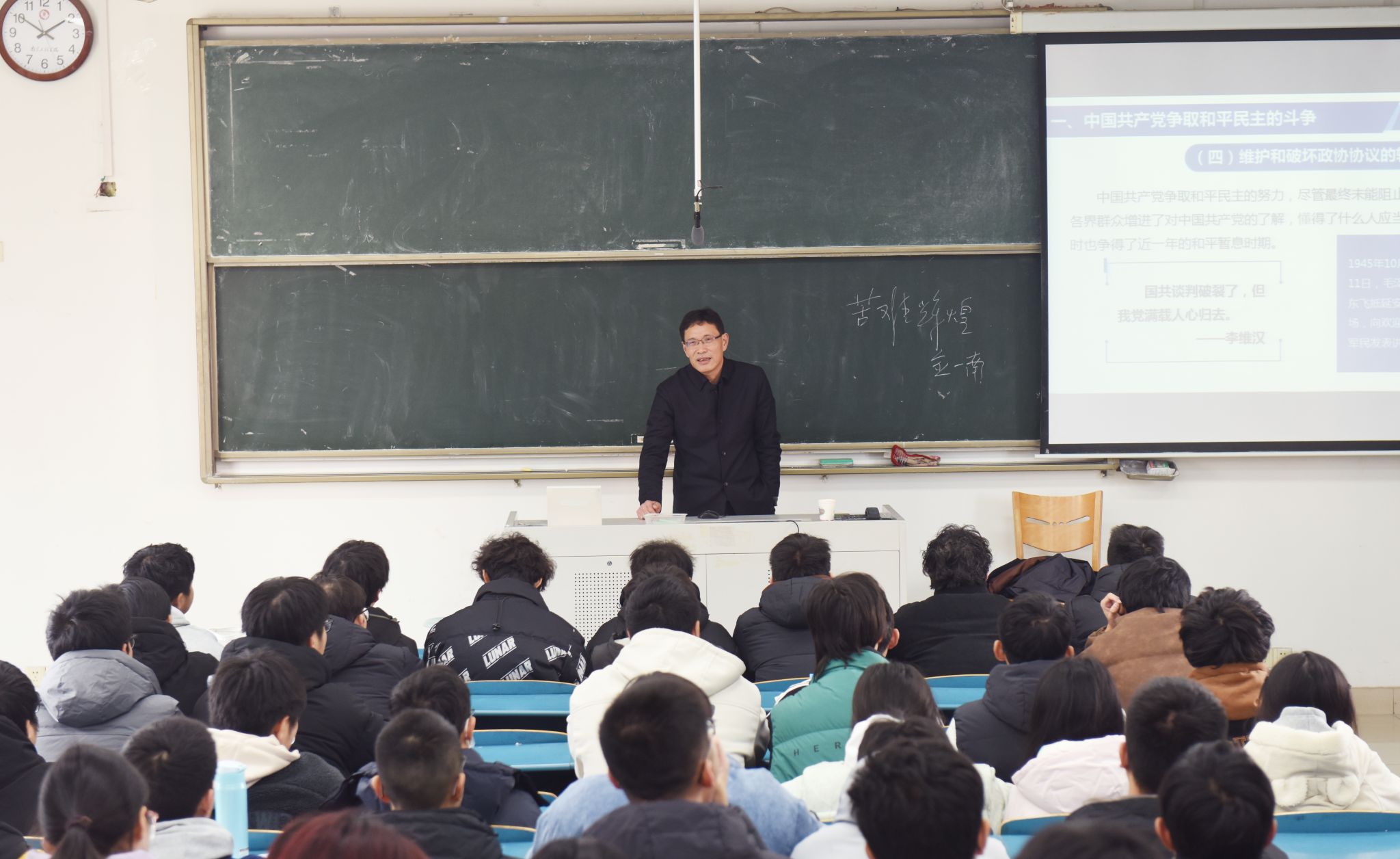 为贯彻落实全国学校思想政治理论课教师座谈会精神,具体落实好“学校党政领导干部带头走进课堂,带头推动思政课建设,带头联系思政课教师”的工作要求,12月26日,在毛泽东诞辰130周年纪念日,党委书记孙爱武,党委副书记、校长张仰飞走进课堂,分别为2023级电力专业和电信专业的学生讲授《中国近现代史纲要》课程。