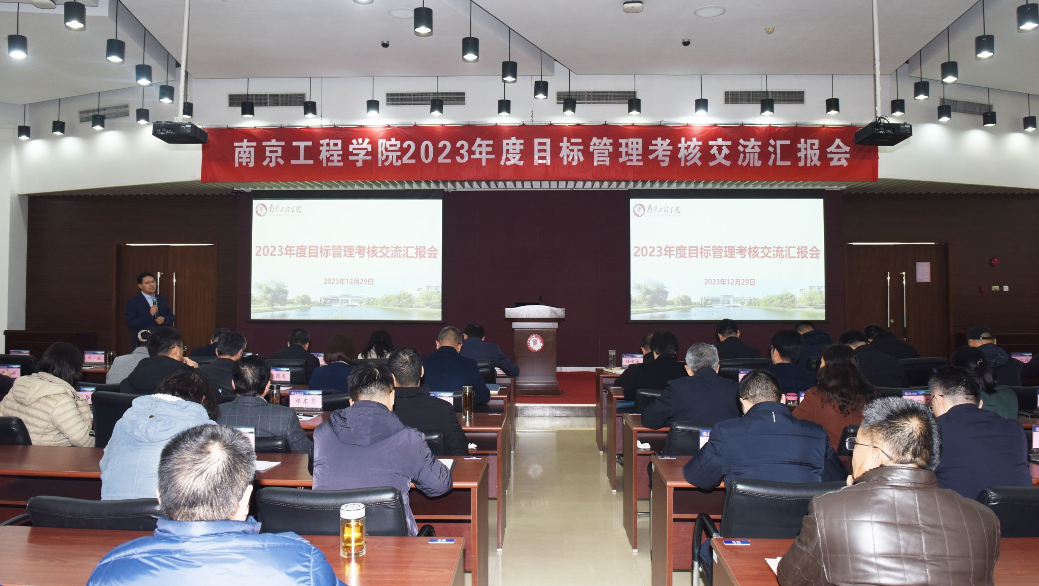 为充分发挥目标管理和绩效考核的“指挥棒”作用,检验各部门各单位一年来围绕学校中心工作的内涵高质量发展成效,在前期对各部门单位年初签订的目标责任书主要指标完成情况进行量化考核的基础上,12月29日,学校举行2023年度目标管理考核交流汇报会。全体校领导,两委委员,职能部门、直属单位、教育教学单位主要负责人,二级单位教代会执委会代表参加会议。