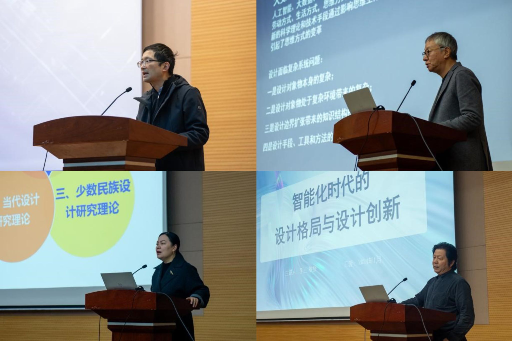 南京艺术学院张凌浩教授、同济大学范圣玺教授、江南大学魏洁教授、苏州大学李正教授分别围绕“数智时代设计学交叉学科及教学路径思考”“设计教育的创造力培养”“中国造物与设计传承”“智能化时代的设计格局与设计创新”等主题作主旨报告。