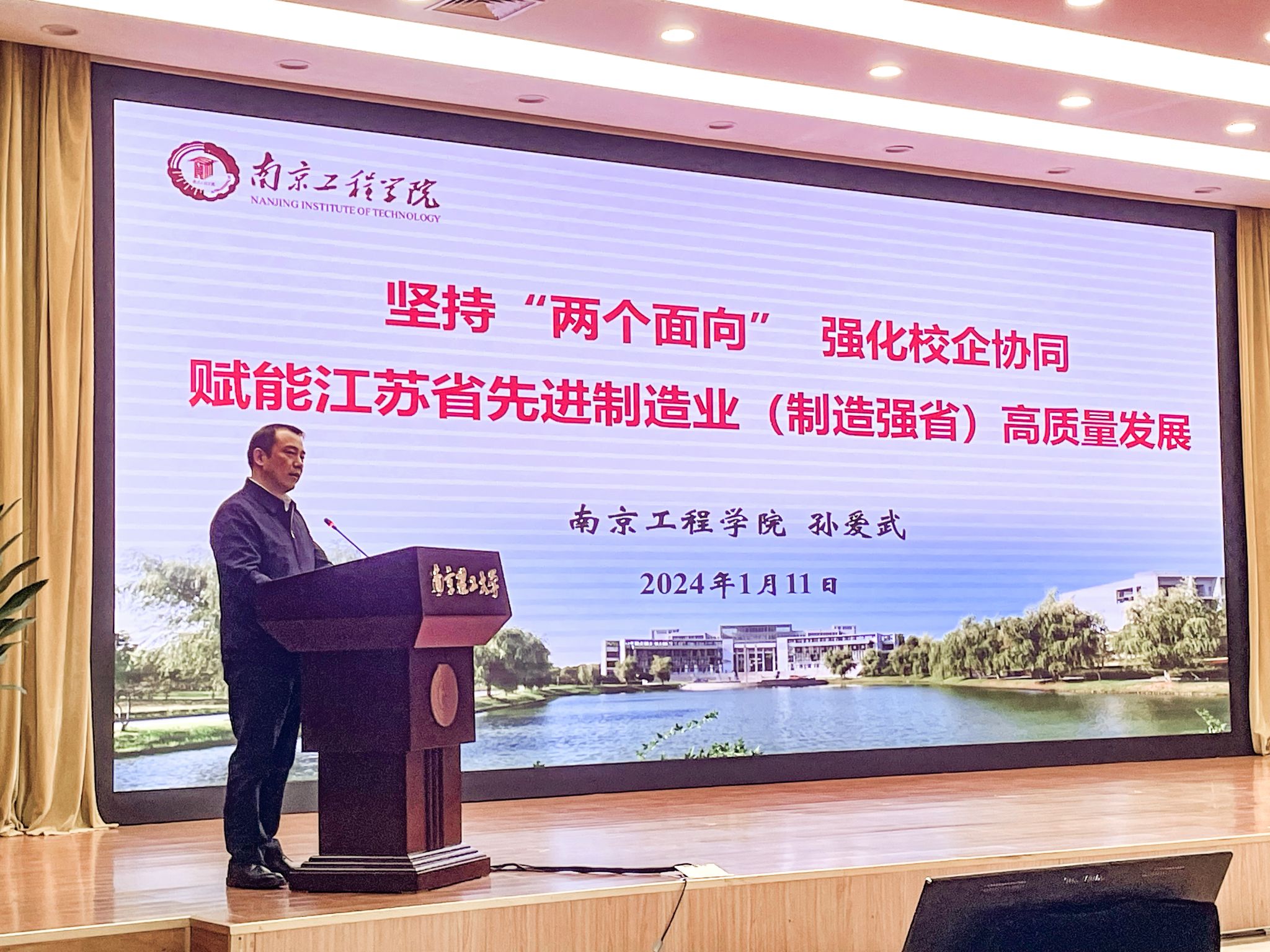 孙爱武在大会上作《坚持“两个面向”、强化校企协同,赋能江苏先进制造业(制造强省)高质量发展》主题报告。他指出,全国应用型高校数量众多,占据中国高等教育的“半壁江山”,因其天然的地方性、行业性、服务性等特点,成为服务现代产业体系不可或缺的重要主体,也是服务区域和中小微企业的主体力量,在推进教育强国、制造强国中发挥独特而关键的作用。他介绍了15vip太阳集团官网源行业而生、因产业而强的发展历程,阐述了学校坚持面向经济主战场、面向国家重大需求,走多元协同、产教融合的办学道路,通过重点打造省协同创新中心、现代产业学院、产业技术研究院等平台载体,持续提升应用型创新人才培养质量和应用科技创新服务能力,赋能校城和行业产业高质量发展,多次获省属高校高质量发展综合考核第一等次,受到教育部部长怀进鹏点名表扬。他表示,2023年6月江苏印发《加快建设制造强省行动方案》,同年9月学校第四次党代会就提出启动一流应用型大学建设“登峰计划”,推进实施“十大一流工程”,通过落实校企行所联合行动计划、技术转移特色名校打造计划、校城融合发展行动计划等具体举措,点-链-面立体对接服务“1650”现代产业体系,努力为教育强省、制造强省作出更大贡献。