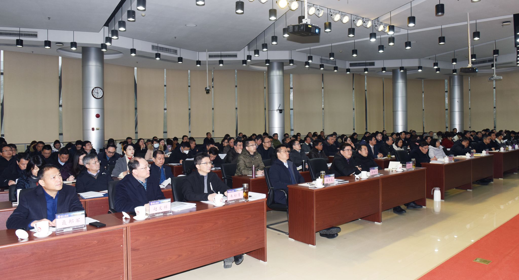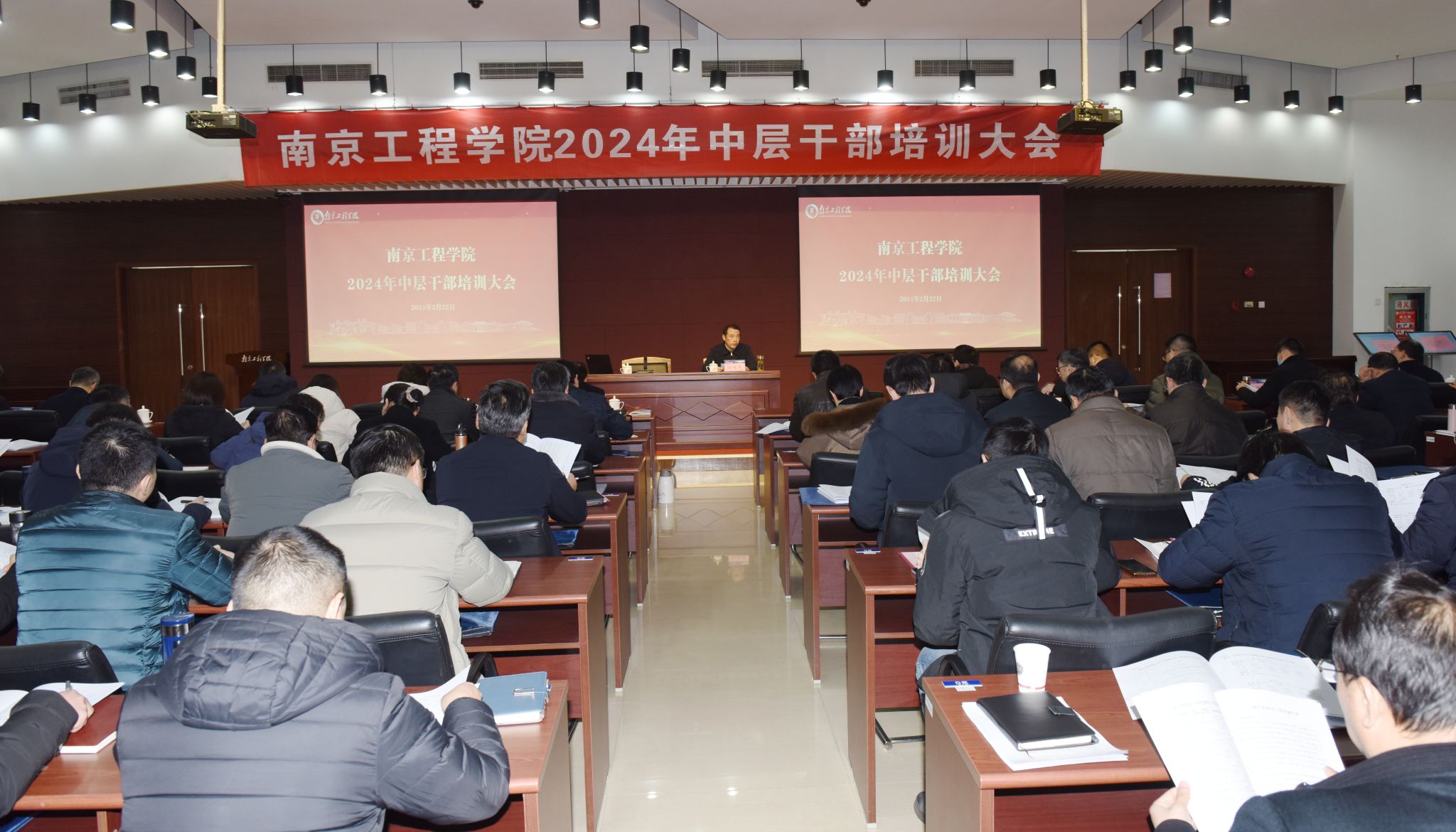 在2024年春季学期即将开始之际,2月22日、24日,学校在至勤楼·行政中心二楼多功能厅举办中层干部培训班,深入学习贯彻习近平新时代中国特色社会主义思想,认真贯彻落实全国组织工作会议精神,全面谋划学校第四次党代会确定的各项目标任务,奋力开启一流应用型大学建设新局面。全体校领导、中层干部以及跟岗锻炼博士教师参加培训。