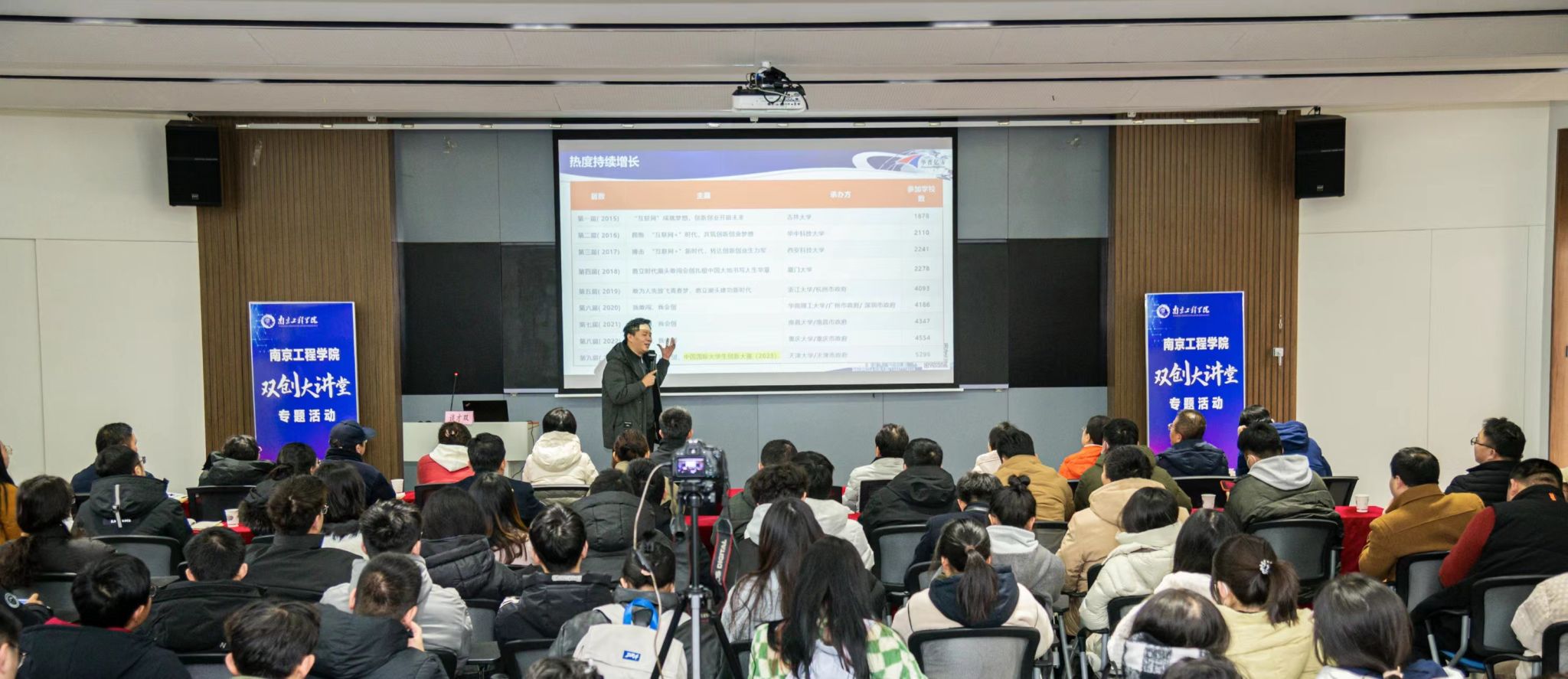 3月1日,由创新创业学院、教务处主办的“双创大讲堂”新学期首场活动在工程中心6号楼B211开讲。此次活动以线上线下相结合的形式,聚焦中国国际大学生创新大赛,邀请到该项赛事辅导专家、南京鼎梦资产管理有限公司总经理谈才双为学校师生开展专题培训。党委常委、副校长朱松青出席活动并讲话。