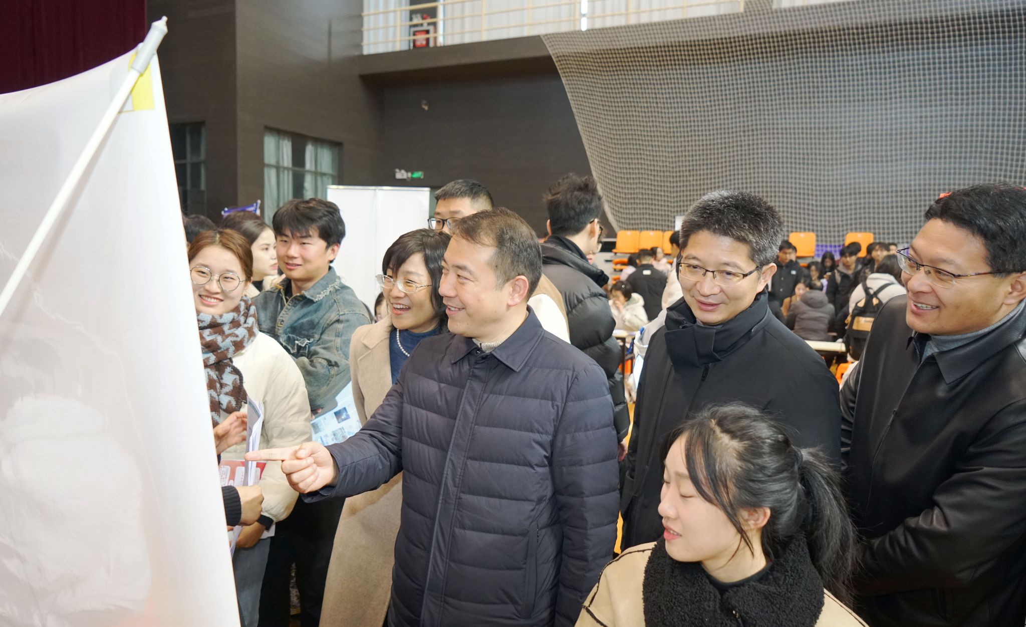 招聘会现场,孙爱武与参会企业代表进行了深入交流,对用人单位表示欢迎和感谢,并详细询问了企业规模、岗位需求及人才储备情况。汪群、朱松青详细了解了毕业生的求职意愿和签约情况,鼓励同学们抓住机遇,尽早明确职业意向、尽快投身求职行动。