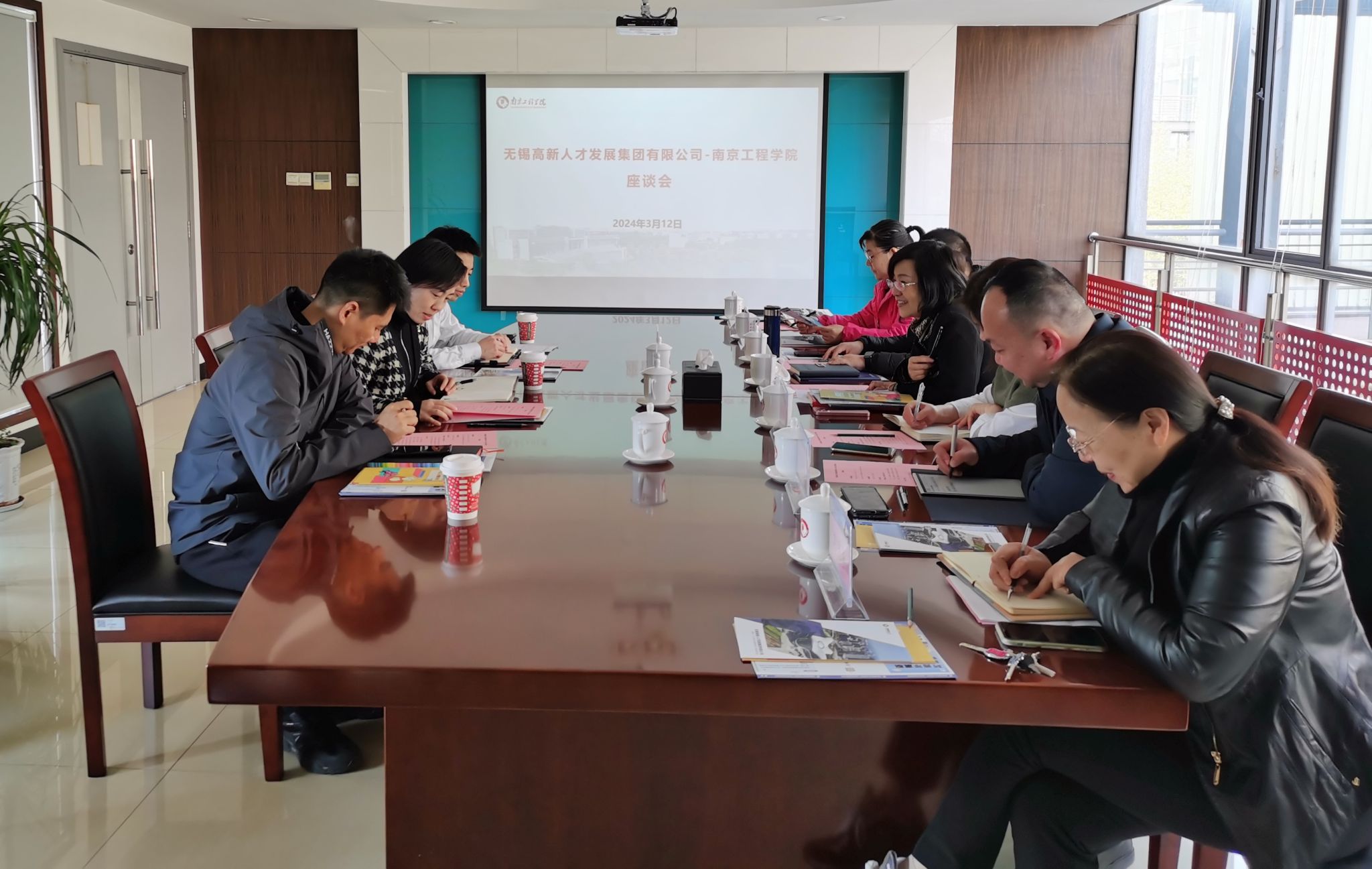 3月12日下午,无锡高新人才发展集团有限公司董事长严茵一行来访太阳集团,党委常委、副校长汪群在至勤楼·行政中心南201会议室热情接待了来宾并座谈。