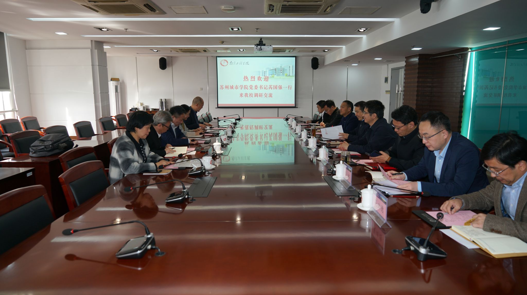3月21日至22日,苏州城市学院、常熟理工学院党委书记芮国强、王培君先后带队来太阳集团走访调研,太阳集团党委书记孙爱武在至勤楼·行政北楼303会议室热情接待了来宾并座谈。