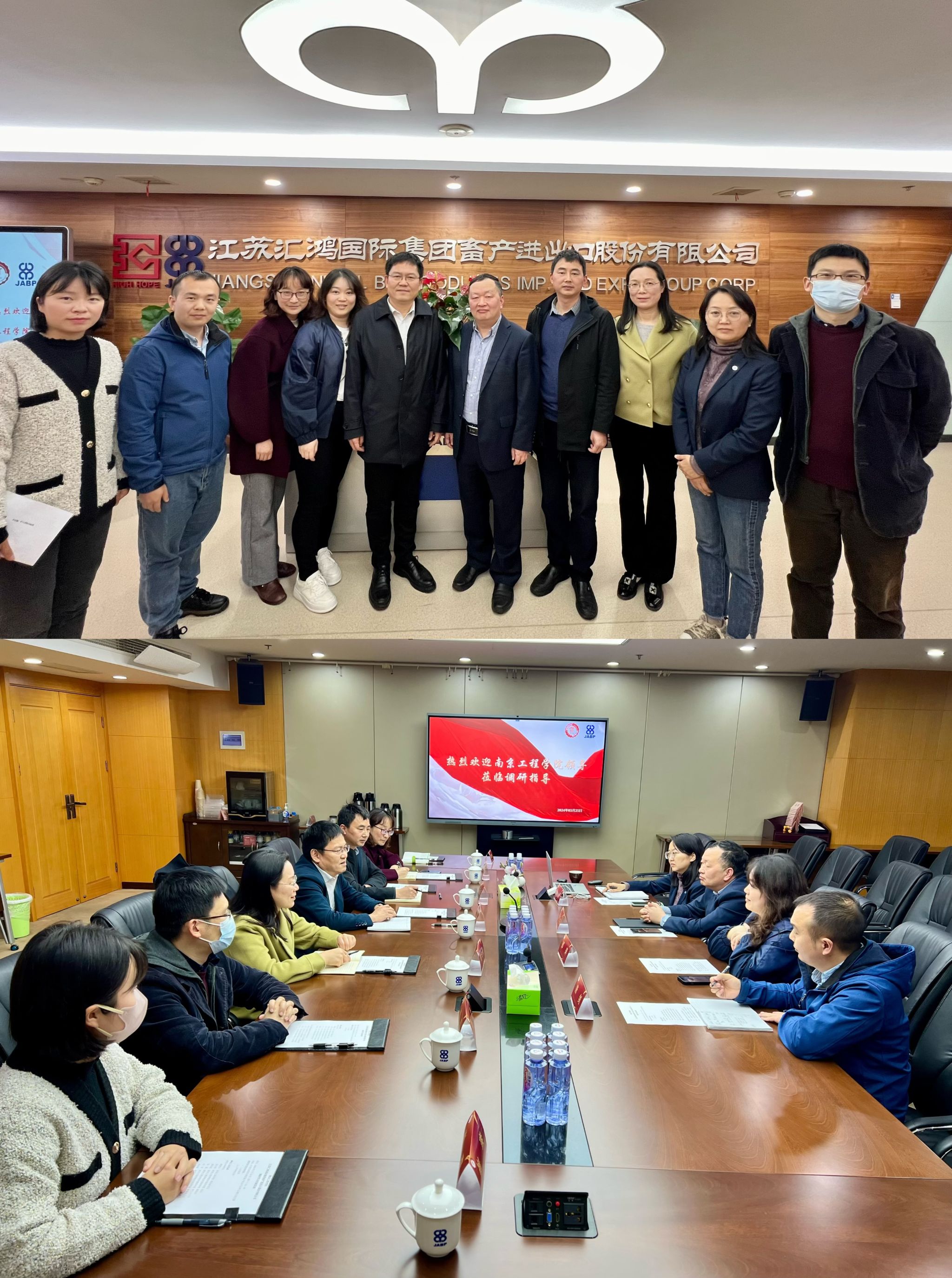为贯彻落实学校第四次党代会精神,进一步深化校企合作,推动毕业生高质量充分就业,3月25日,党委副书记濮励杰带领外国语学院相关负责人、教师代表赴江苏汇鸿国际集团畜产进出口股份有限公司开展“访企拓岗促就业”专项活动。汇鸿畜产进出口股份有限公司党总支委员、副总经理闻卫东,人力资源部及下属两家子公司负责人给予热情接待。