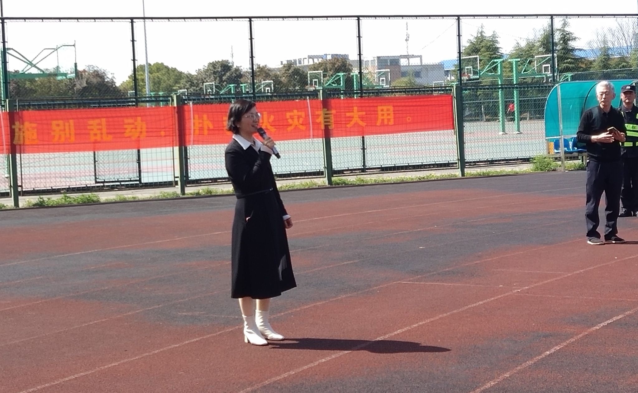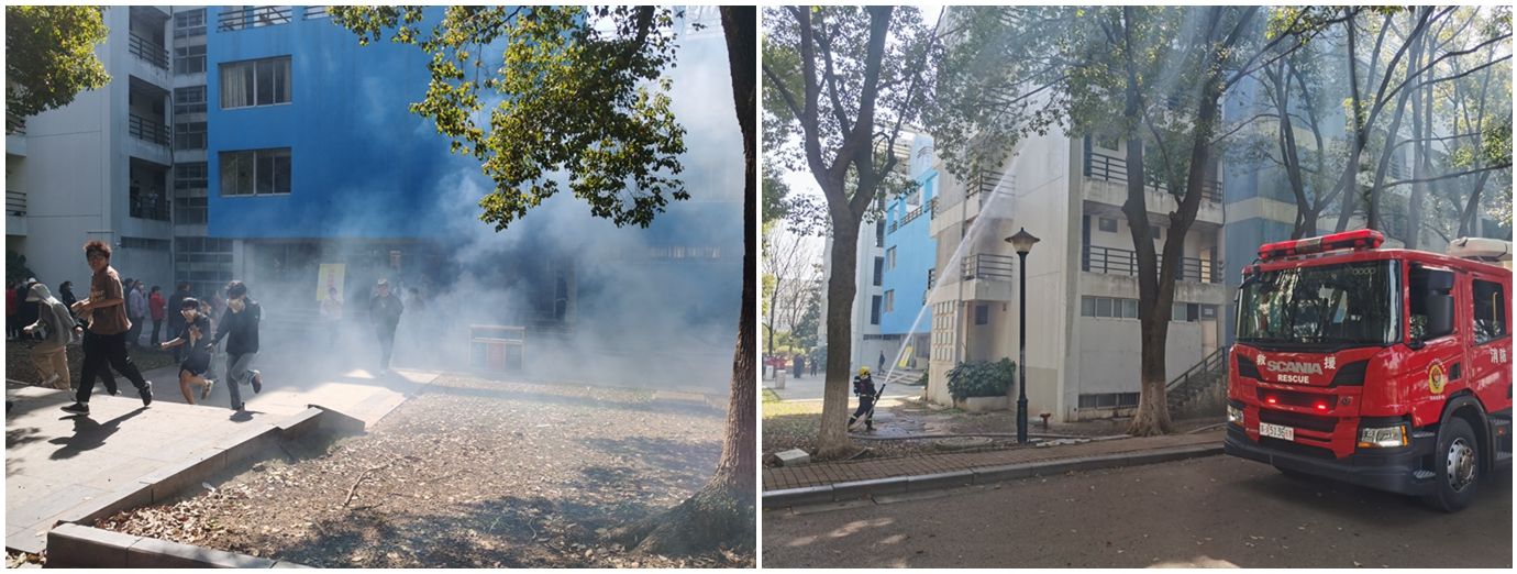 校党委常委、副校长汪群来到活动现场观摩演练。她表示,消防安全工作是学校稳定发展的重要基石,对保障师生生命安全和学校财产安全至关重要。希望通过演练,师生们能更深入地了解消防安全知识,增强自我防范意识,提升自救能力,达到以练促防、防消结合的目的。
