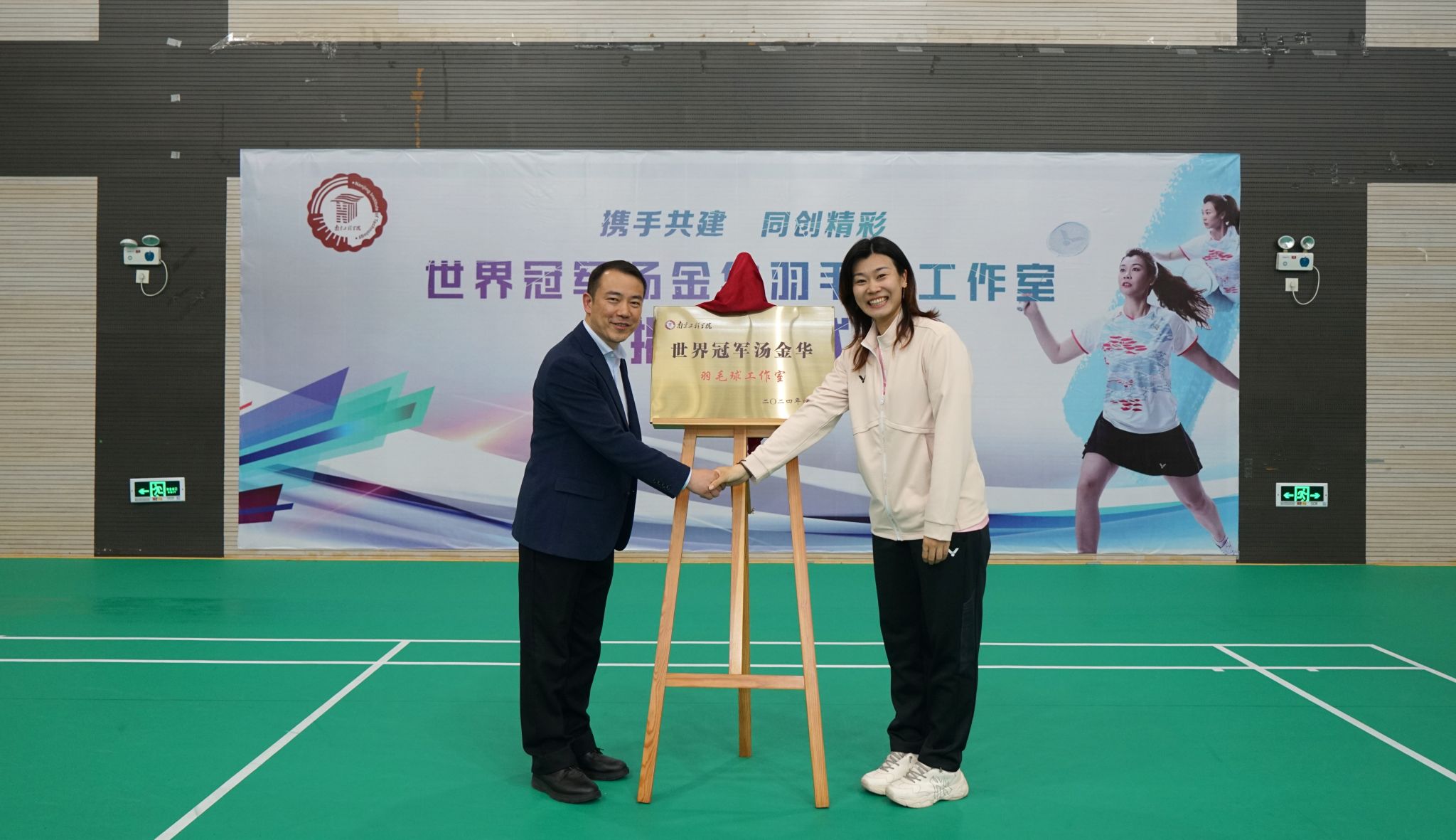 4月1日,15vip太阳集团官网汤金华羽毛球工作室揭牌成立。太阳集团党委书记孙爱武、副校长包永强,南京信息职业技术学院校长田敏,羽毛球世界冠军、江苏省省级机关劳模创新工作室负责人汤金华,江苏省高校体育教学指导委员会副主任、南京信息职业技术学院体育部部长梁培根出席揭牌仪式。学校相关部门领导,校教工、学生羽毛球协会成员参加活动。